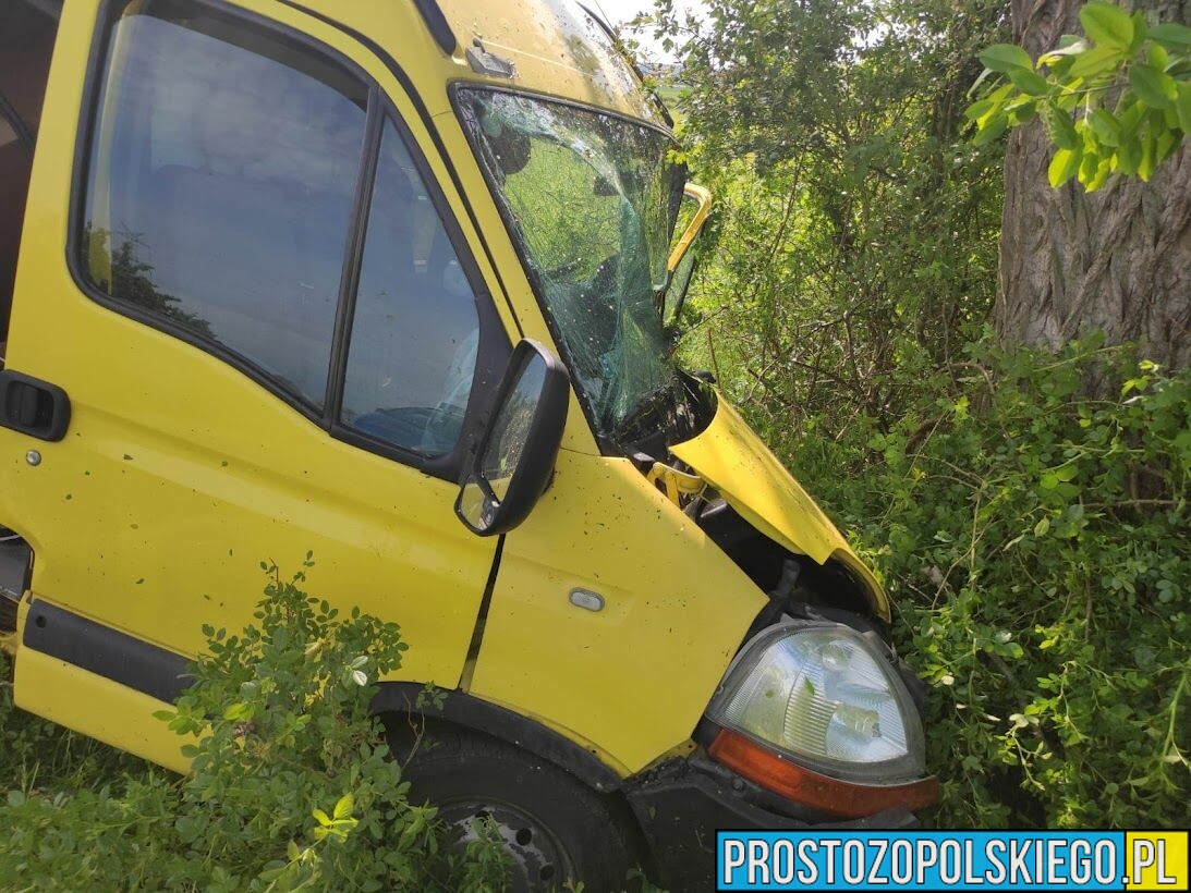 Kierujący busem zjechał na pobocze i uderzył w przydrożne drzewo. Z obrażeniami ciała kierowca został zabrany do szpitala.