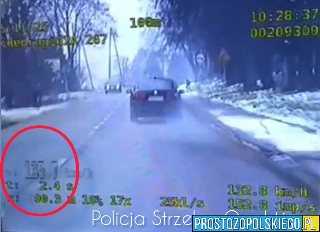 Policjanci grupy SPEED strzeleckiej komendy pełnili służbę na terenie gminy Ujazd wykorzystując do działań nieoznakowany radiowóz. Funkcjonariusze zatrzymali tam do kontroli kierowcę volkswagena, który znacznie przekroczył dopuszczalną prędkość. Pomiary wykazały, że mężczyzna jechał aż 135 km/h w miejscu, gdzie obowiązuje ograniczenie do 50 km/h. Za tak rażące naruszenie przepisów kierujący stracił prawo jazdy na 3 miesiące, otrzymał mandat w wysokości 2500 zł, a na jego konto trafiło 15 punktów karnych.