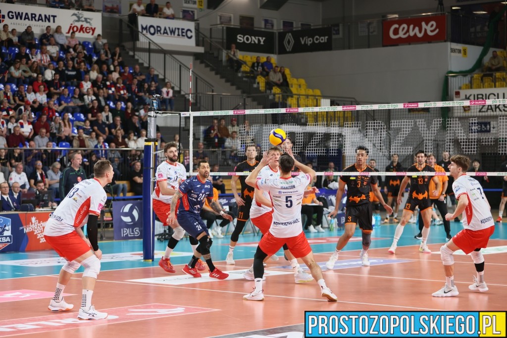 Tie-breaka atakiem z lewego skrzydła otworzył Rafał Szymura. Kolejne oczko, bezpośrednio z zagrywki zapisał na naszym koncie Karol Urbanowicz. Zwieńczeniem udanego startu naszego zespołu był punktowy blok na 4:1 i to trener Krastins musiał interweniować. Przerwa nie wybiła naszej drużyny z rytmu, kolejne akcje kończyli Igor Grobelny czy Mateusz Rećko i przy mianie stron boiska prowadziliśmy 8:3. Kolejne punkty na naszym koncie zapisywał Szymon Jakubiszak, szukając swoich szans w tym secie goście popełniali kolejne błędy własne (10:3). Po naszej stronie nie do zatrzymania byli Igor Grobelny i Kamil Rychlicki. Seta i całe spotkanie zakończył dobry serwis Karola Urbanowicza i atak Kamila Rychlickiego z przechodzącej piłki (15:6).