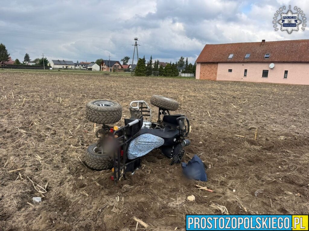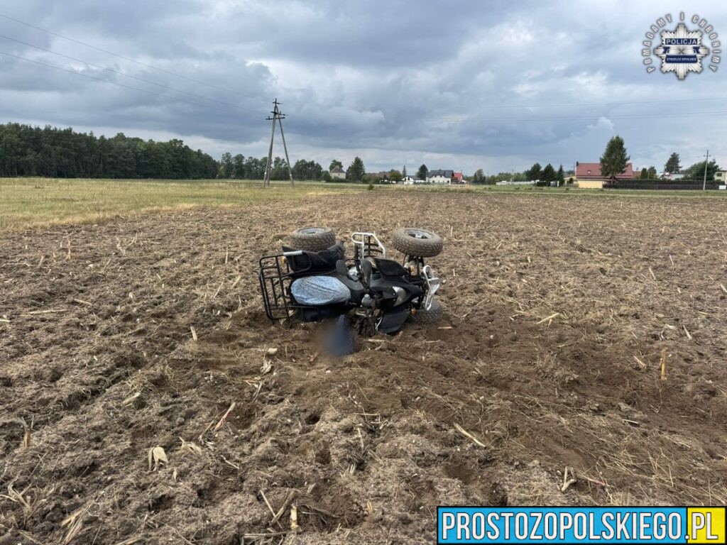 Policjanci z grupy SPEED strzeleckiej Policji zatrzymali 56-letniego mieszkańca gminy Jemielnica, który prowadził czterokołowiec lekki w stanie nietrzeźwości. Mężczyzna nie zatrzymał się do kontroli, uciekał przed radiowozem i zakończył rajd na polu uprawnym, gdzie wywrócił pojazd.