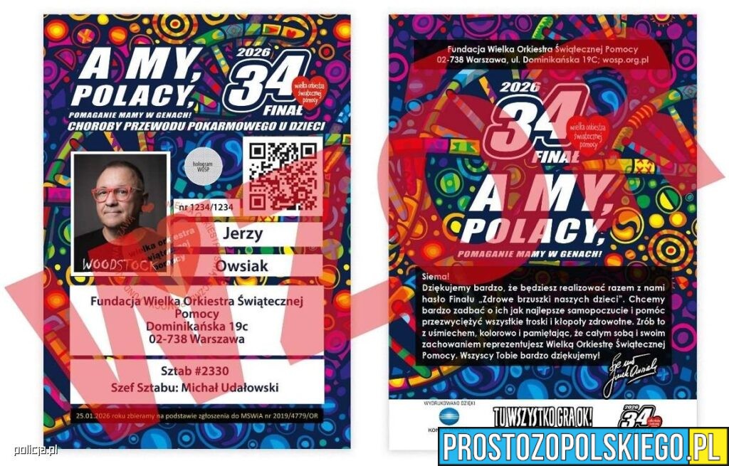 Nieodzownym atrybutem wolontariuszy są wszystkim doskonale znane „serduszkowe” naklejki. Jeśli zaistnieje podejrzenie, że ktoś podszywa się pod wolontariusza WOŚP i posługuje się podrobionym identyfikatorem lub podejrzanie wyglądającą puszką, należy skontaktować się z Policją lub Strażą Miejską / Gminną.