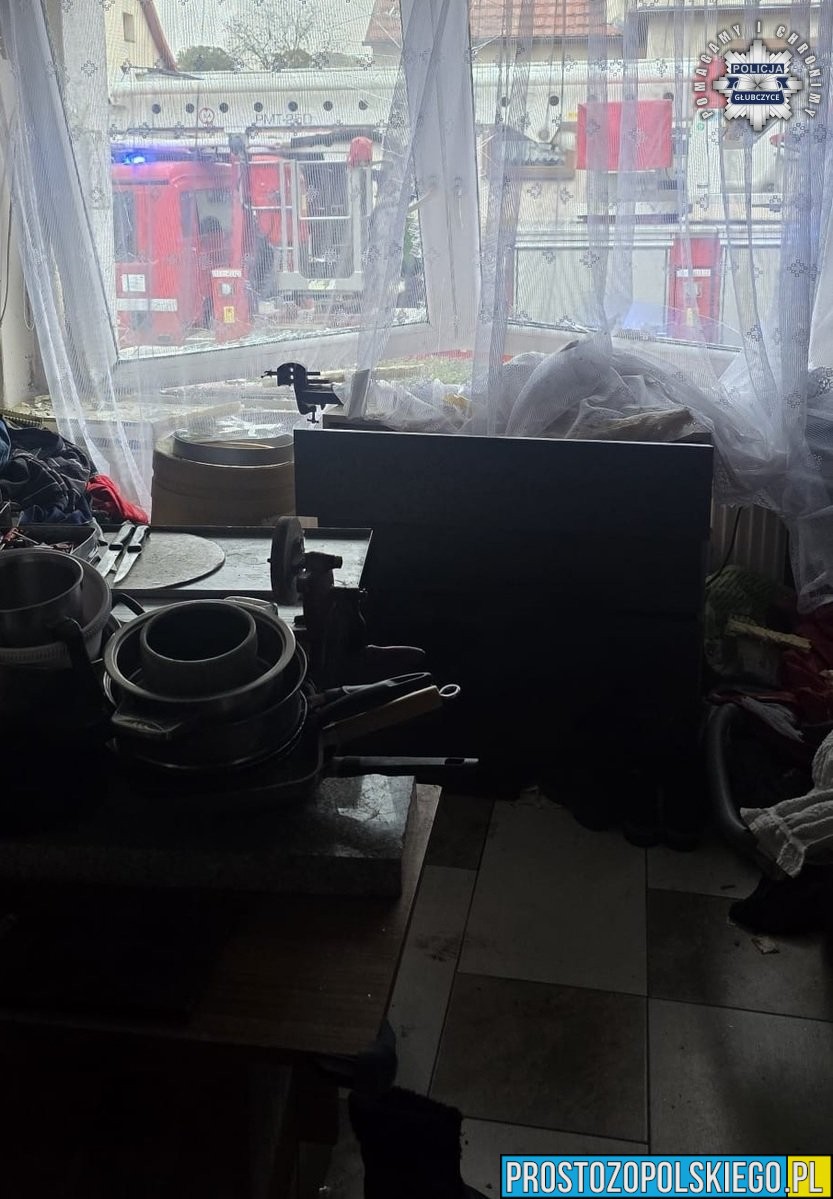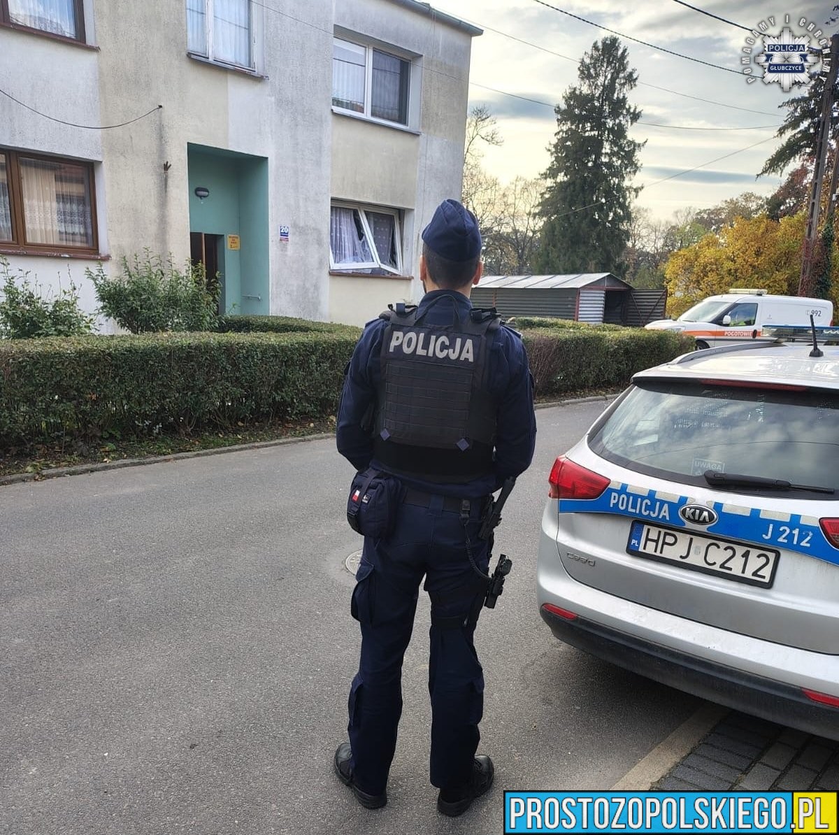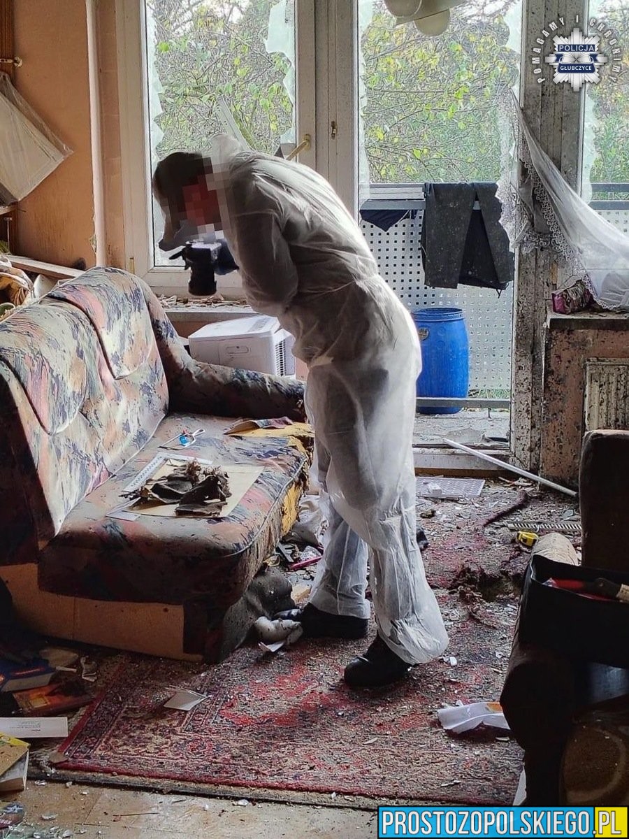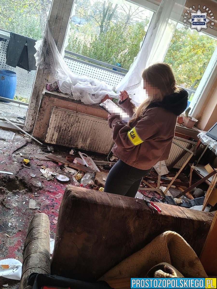 21 października 2025 roku około godz. 7.30 dyżurny Komendy Powiatowej Policji w Głubczycach otrzymał informację, że w budynku wielorodzinnym przy ulicy Mickiewicza okno jednego z mieszkań, nienaturalnie wisi poza obrys elewacji, tak jakby doszło do wybuchu. Dyżurny natychmiast pod wskazany adres wysłał patrol policji, który potwierdził zgłoszenie, że w mieszkaniu doszło do wybuchu nieznanego przedmiotu. W mieszkaniu znajdowały się 3 osoby: dwóch mężczyzn w wieku 62 i 65 lat oraz 45-letnia kobieta. Wszyscy byli pod wpływem alkoholu. Najstarszy z mężczyzn miał prawie pół promila, a kobieta i właściciel mieszkania ponad 2,5 promila alkoholu w organizmie. W wyniku zdarzenia dwóch mężczyzn zostało rannych. Jeden z nich z urazem nogi a drugi z ogólnymi obrażeniami ciała trafili do szpitala. Ich życiu nie zagraża niebezpieczeństwo. Na miejsce zostali zadysponowani policjanci z psami wyszkolonymi do wyszukiwania zapachu materiałów wybuchowych, a także saperzy z Samodzielnego Pododdziału Kontrterrorystycznego Policji w Katowicach. Zarządzono ewakuacje mieszkańców budynku, w którym doszło do wybuchu i okolicznych domów. Na czas działania Policji ewakuowano 36 osób.