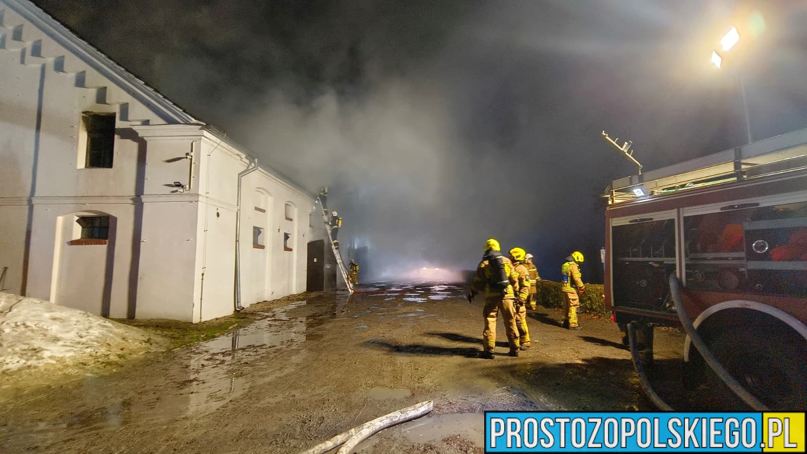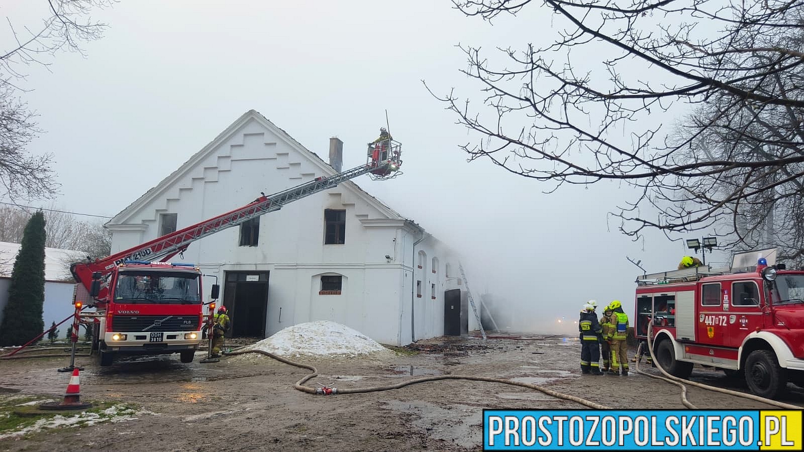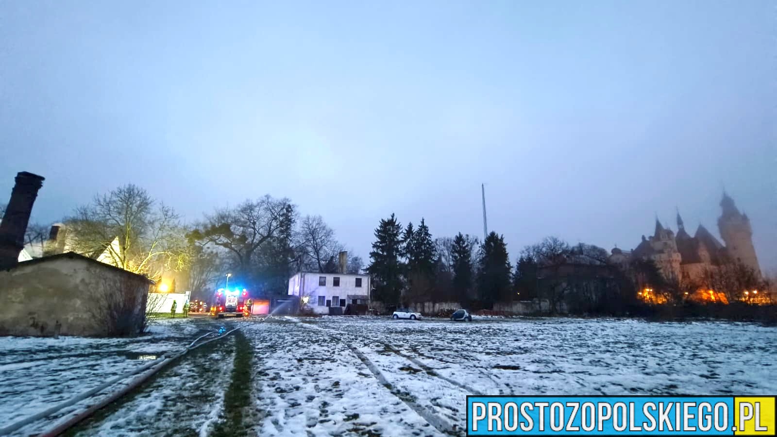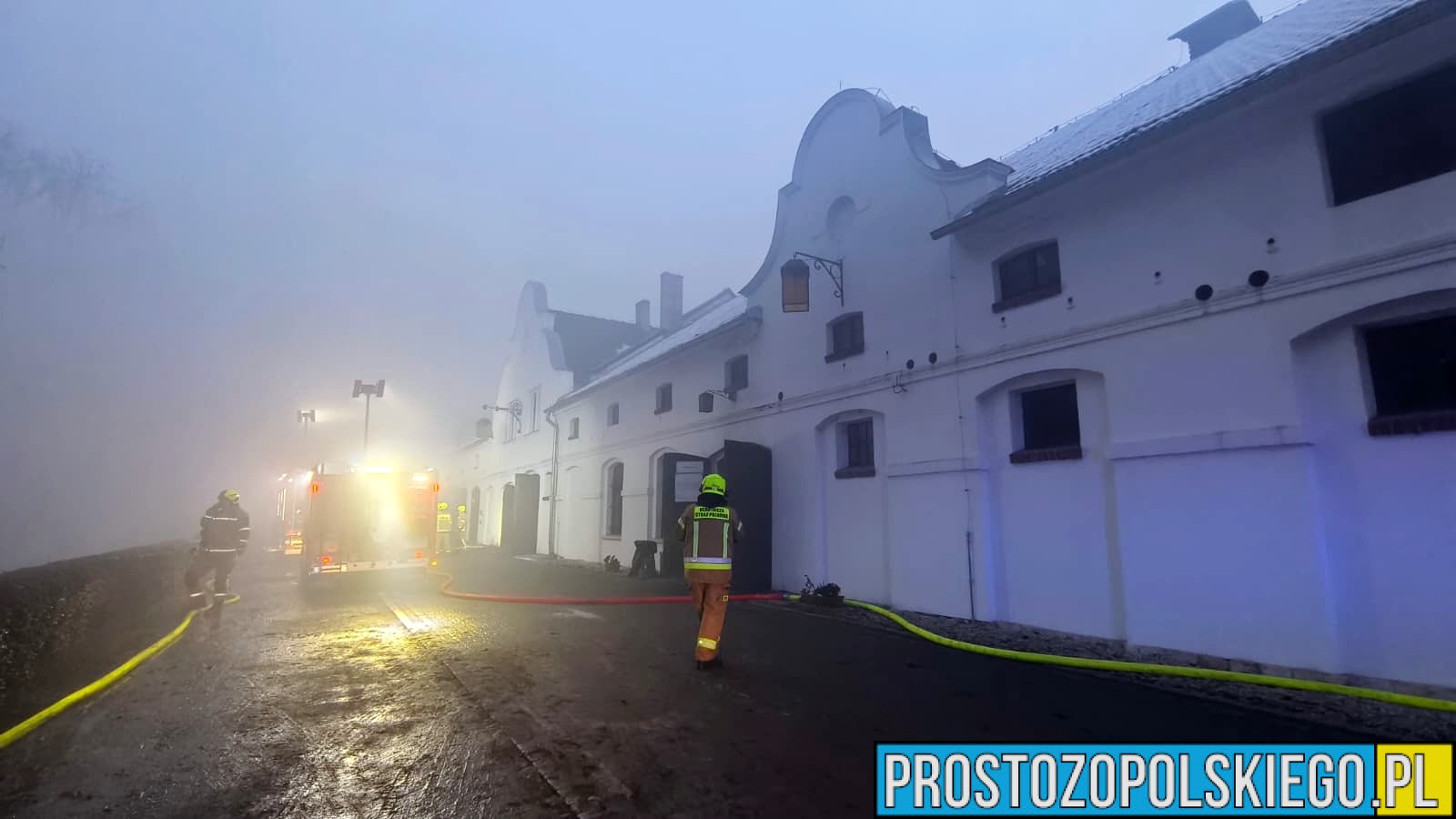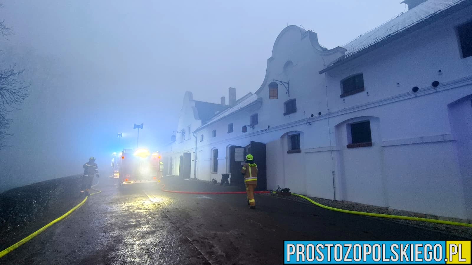 Od wczesnych godzin porannych strażacy walczyli z groźnym pożarem, który wybuchł na terenie Stadniny Koni w Mosznej. Ogień objął zabytkowy, dwukondygnacyjny budynek łączący funkcje mieszkalne i gospodarcze. Pożar doszczętnie zniszczył dach oraz piętro, gdzie znajdowały się lokale mieszkalne.