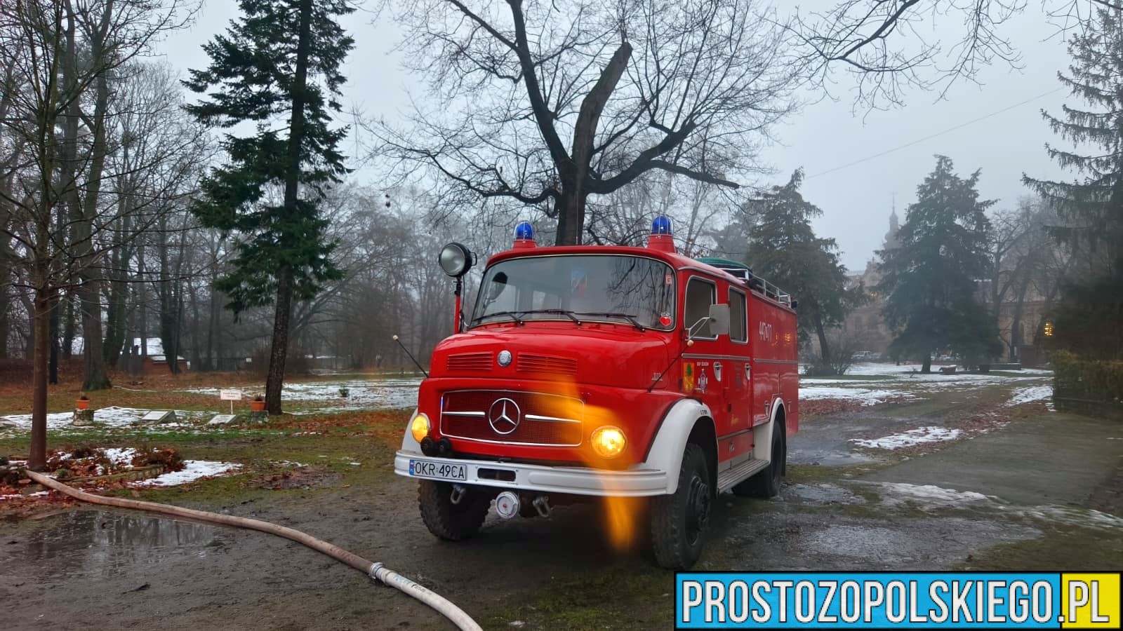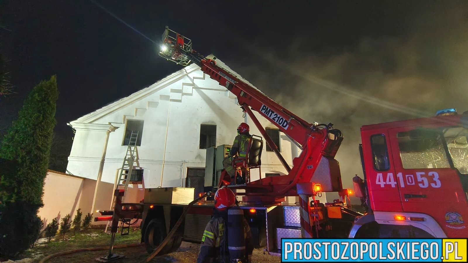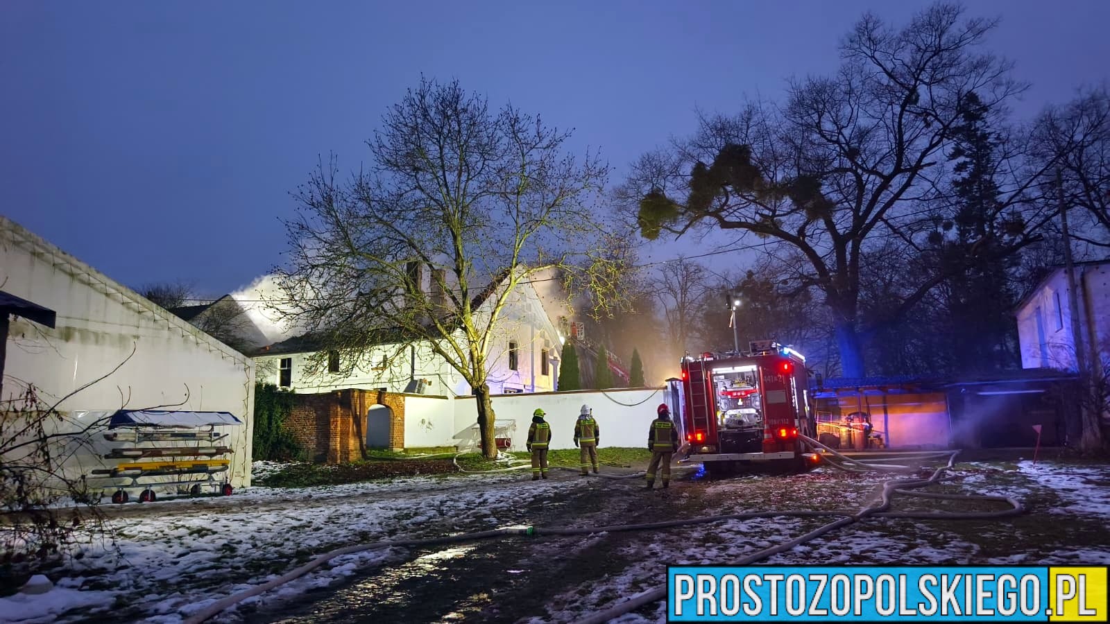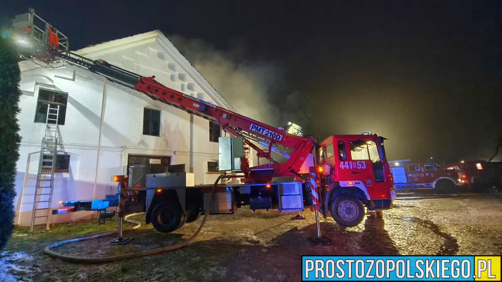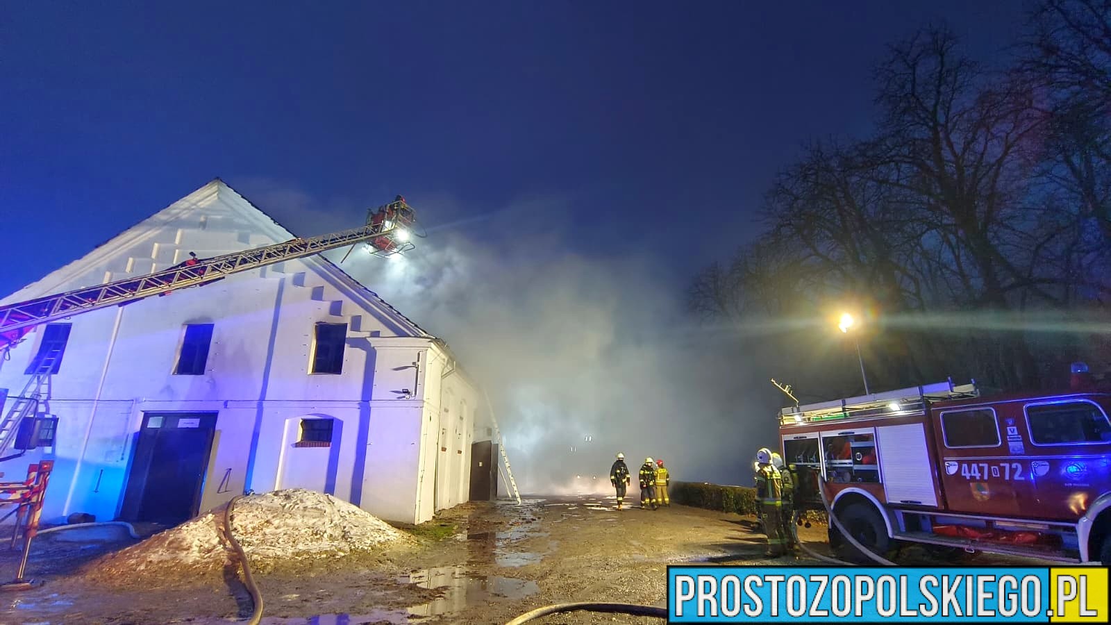 Od wczesnych godzin porannych strażacy walczyli z groźnym pożarem, który wybuchł na terenie Stadniny Koni w Mosznej. Ogień objął zabytkowy, dwukondygnacyjny budynek łączący funkcje mieszkalne i gospodarcze. Pożar doszczętnie zniszczył dach oraz piętro, gdzie znajdowały się lokale mieszkalne.