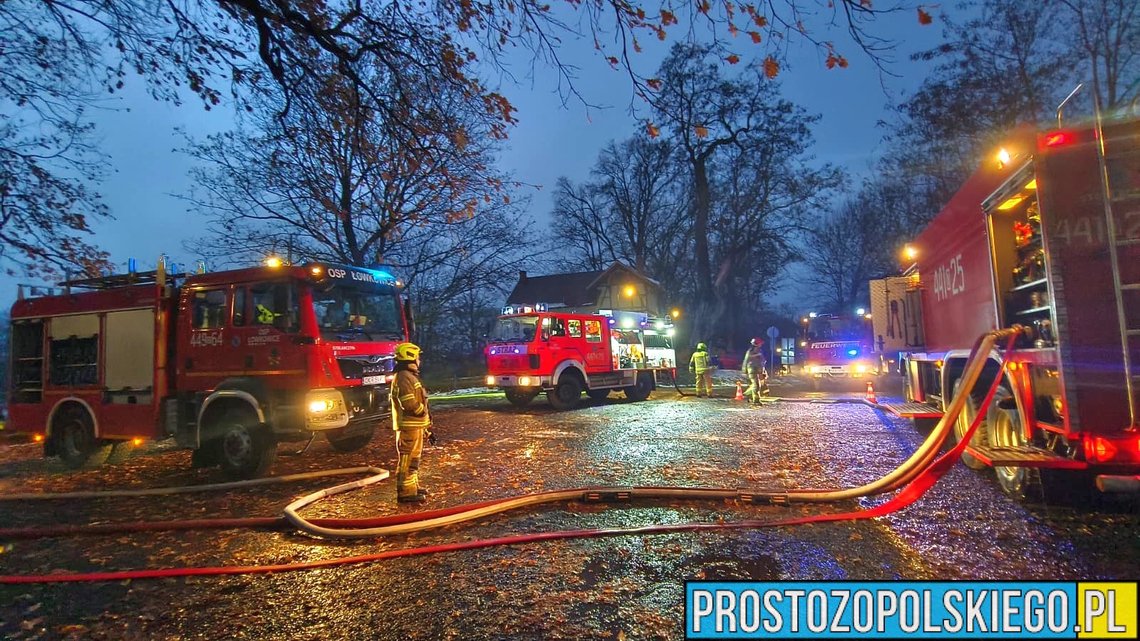 Służby zostały zaalarmowane po godzinie 4:00. Ogień pojawił się na dachu budynku położonego w bezpośrednim sąsiedztwie słynnego pałacu w Mosznej, dawnego majątku hrabiowskiego. Płomienie błyskawicznie rozprzestrzeniły się po konstrukcji, trawiąc poddasze oraz część mieszkalną.