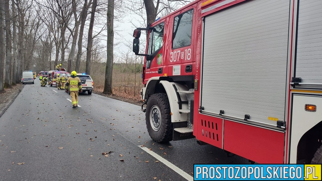 Ze wstępnych ustaleń wynika, że kierujący samochodem osobowym z nieznanych przyczyn zjechał z drogi i uderzył w drzewo. Pojazdem podróżowały trzy osoby – dwie osoby dorosłe oraz dziecko.