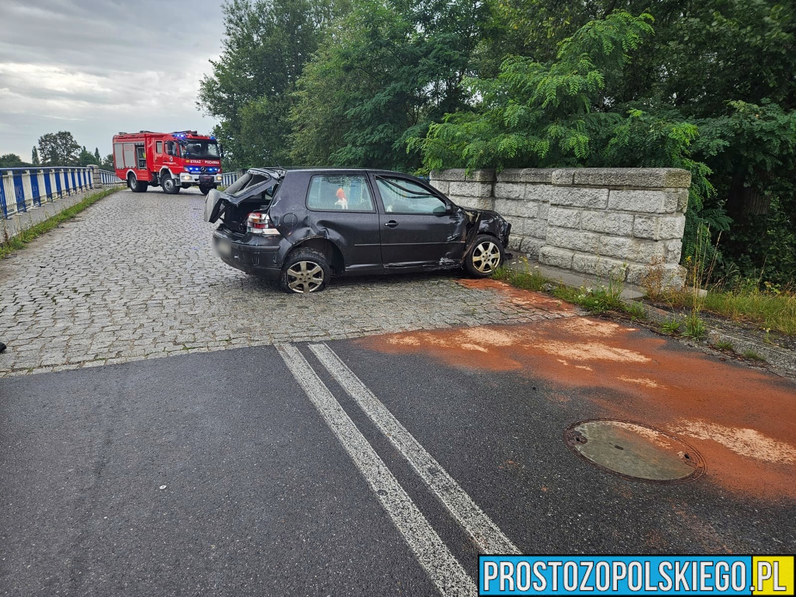 Kierujący Volkswagena Golf nie dostosował, prędkości do warunków panujących na drodze i stracił panowanie nad pojazdem, następnie na moście uderzył w barierki.