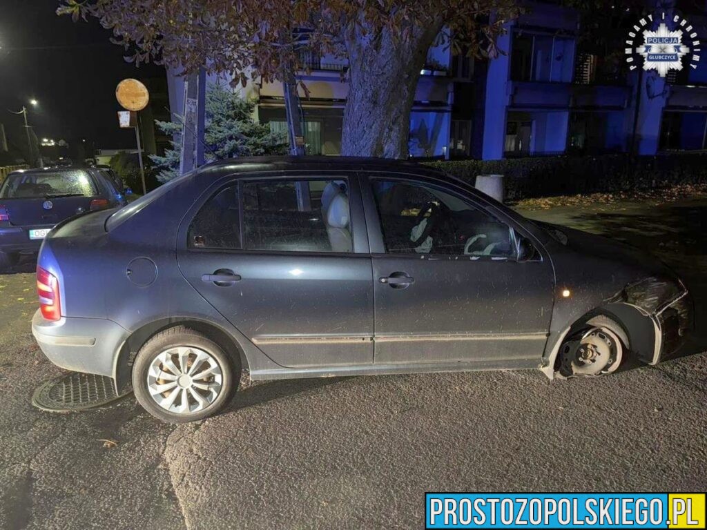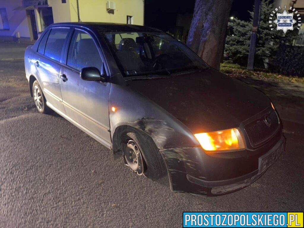 Do zdarzenia doszło wczoraj 22 października , tuż przed godziną 18:00. Dyżurny Komendy Powiatowej Policji w Głubczycach otrzymał zgłoszenie o kierowcy skody, który uderzył w drzewo. Zgłaszający poinformował również, że kierujący prawdopodobnie jest nietrzeźwy.