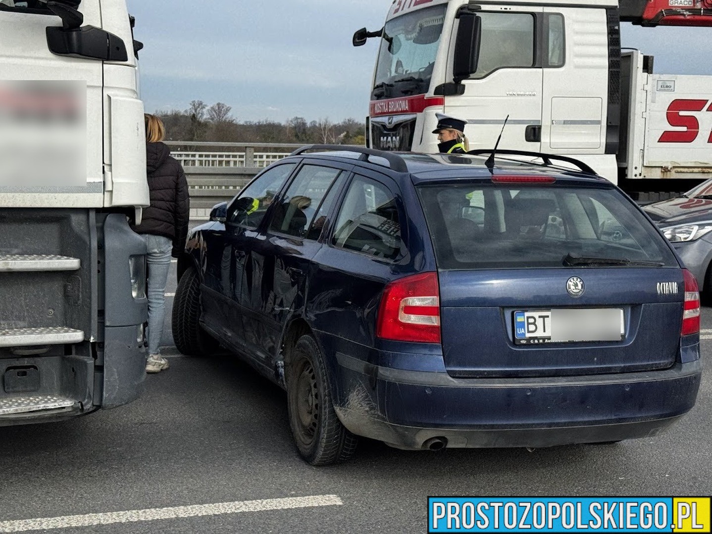 Po zderzeniu skoda, która posiadała ukraińskie numery rejestracyjne, zatrzymała się w poprzek jezdni, blokując przejazd środkowym pasem ruchu.