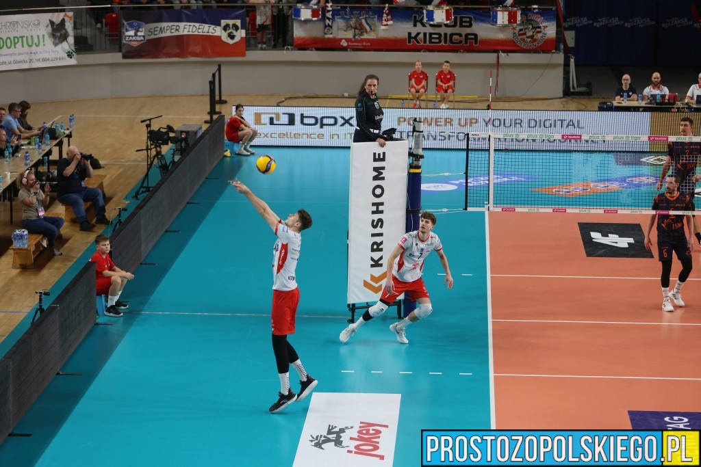 Spotkanie rozpoczęło się po myśli naszego zespołu, Quinn Isaacson dość szybko uruchomił grę przez środek, a tam nie zawodził Szymon Jakubiszak. Na skrzydłach kolejne akcje kończył Igor Grobelny, co przy zagraniach Kujundzicia z Szerszeniem sprzyjało utrzymywaniu gry na styku (6:6). Niestety nie ustrzegliśmy się nerwowości, co pozwoliło ekipie trenera Kowala nieco odskoczyć (7:9). Przerwa na żądanie naszego trenera pomogła, znakomity atak Karola Urbanowicza i zagrywka naszego środkowego doprowadziły do wyrównania (9:9). Rywale nie ustrzegli się też błędów własnych i po zerwanych ataku Szerszenia odzyskaliśmy prowadzenie. Przez chwilę utrzymywała się gra punkt za punkt, jednak to nasz zespół szybciej przystąpił do ataku. Po punktowym bloku na Kaczmarku prowadziliśmy 14:13, aby po chwili powstrzymać na skrzydle również Kujundzicia. Skuteczna gra naszego zespołu i kolejne kontrataki zwiększyły dystans i Andrzej Kowal ponownie przywołał swoich podopiecznych do siebie (20:16). Nie zatrzymało to naszej drużyny, pewność w ataku Kamila Rychlickie, a w kluczowej fazie seta seria zagrywek naszego atakującego okazały się kluczem do sukcesu (23:16). Tej zaliczki nie pozwoliliśmy sobie już odebrać, kropkę nad „i” sprytnie obijając blok przeciwnika postawił Rafał Szymura (25:16).