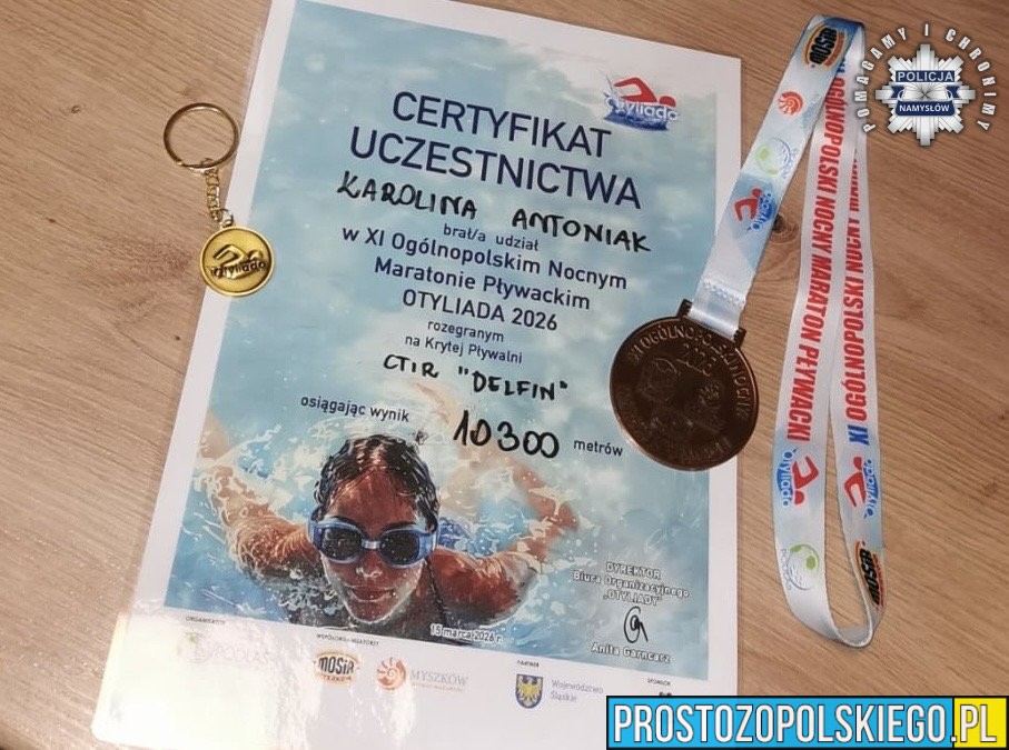 Sierż. Karolina Antoniak z Komendy Powiatowej Policji w Namysłowie osiągnęła znakomity wynik podczas XI edycji Ogólnopolskiego Nocnego Maratonu Pływackiego „Otyliada”. Funkcjonariuszka pokonała dystans aż 10 300 metrów, co było jednym z najlepszych rezultatów w tegorocznych zawodach.