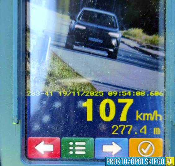 Podczas jednej z kontroli policjanci namierzyli samochód osobowy, którego prędkość znacznie przekraczała dozwoloną wartość. Pomiar wykazał 107 km/h w miejscu, gdzie obowiązuje ograniczenie do 50 km/h. Tak duże przekroczenie stanowi realne zagrożenie zarówno dla pieszych, jak i innych uczestników ruchu.