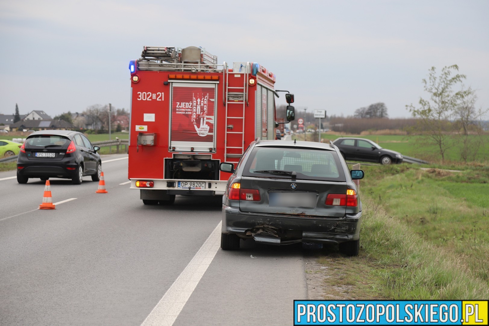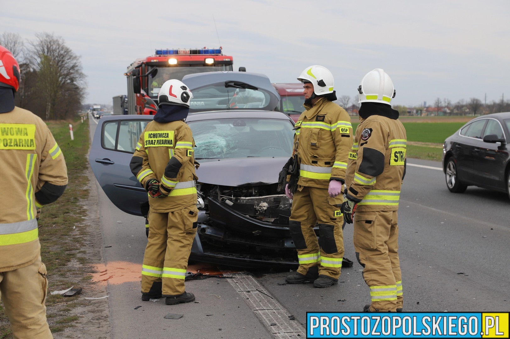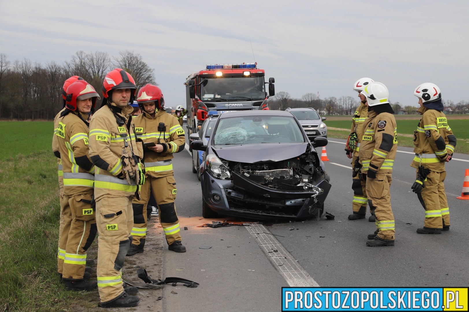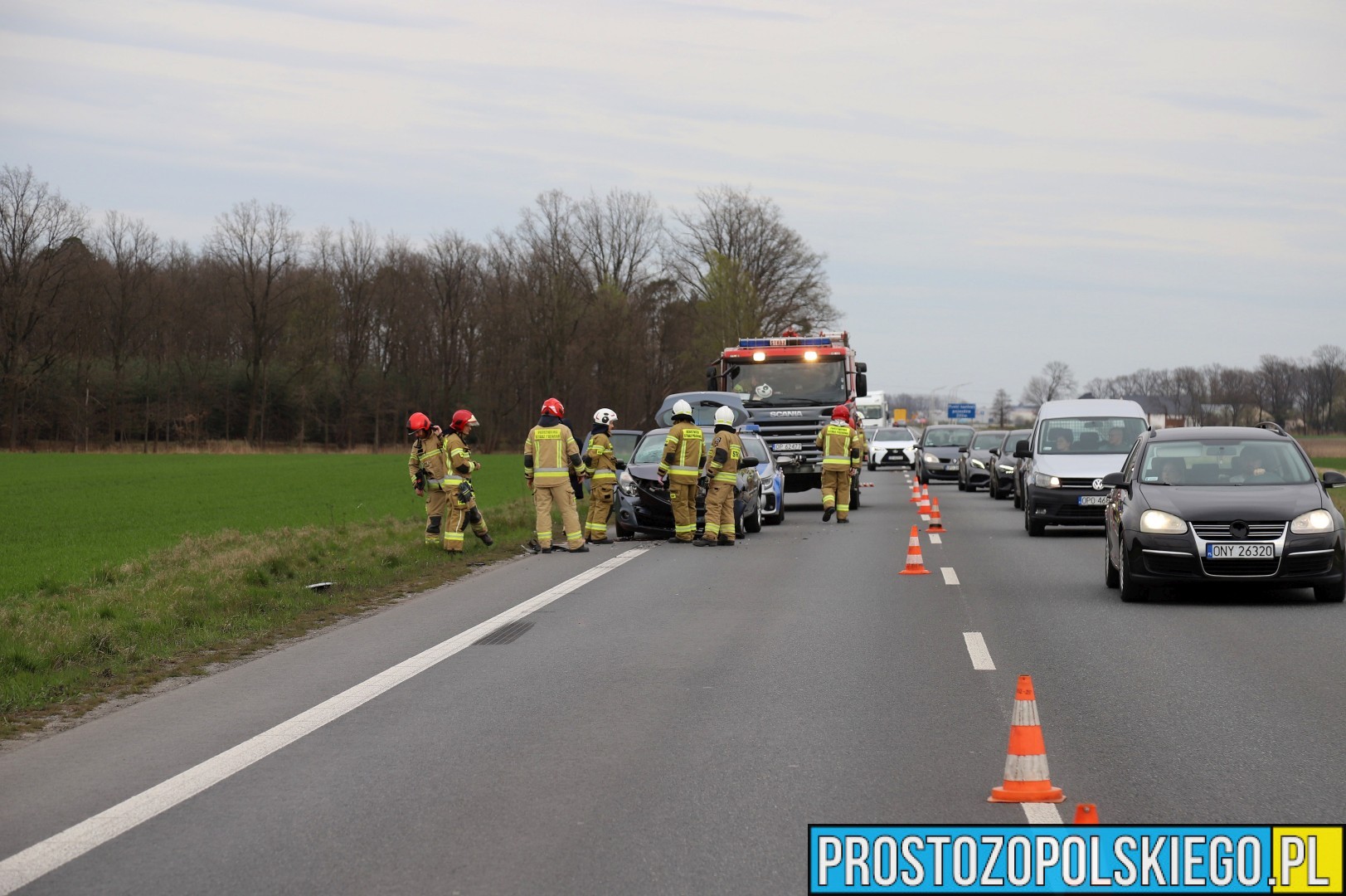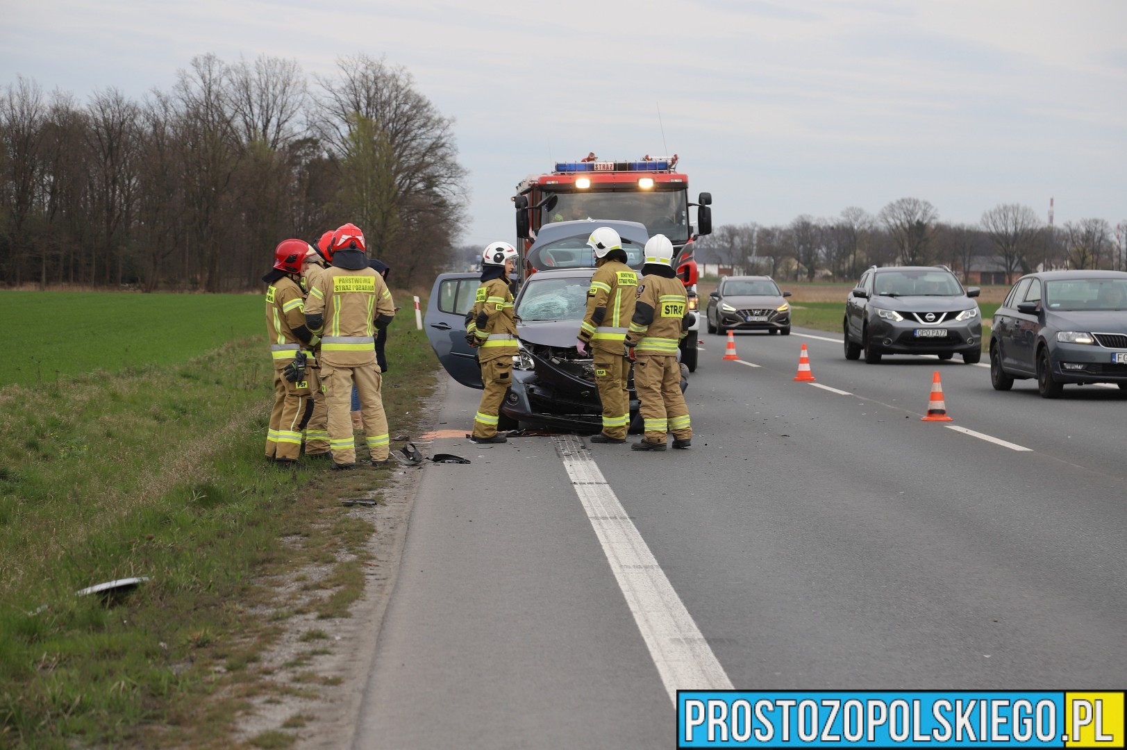 Na miejscu interweniowały dwa zastępy straży pożarnej z JRG 2 Opole, jednostka OSP Opole-Bierkowice oraz patrol policji. W trakcie działań służb ratunkowych strażacy kierowali ruchem, aby zapewnić bezpieczeństwo i płynność przejazdu.