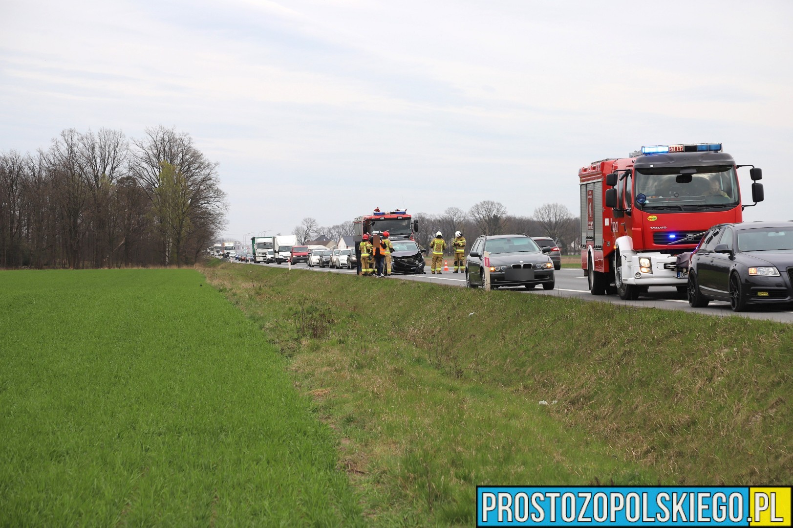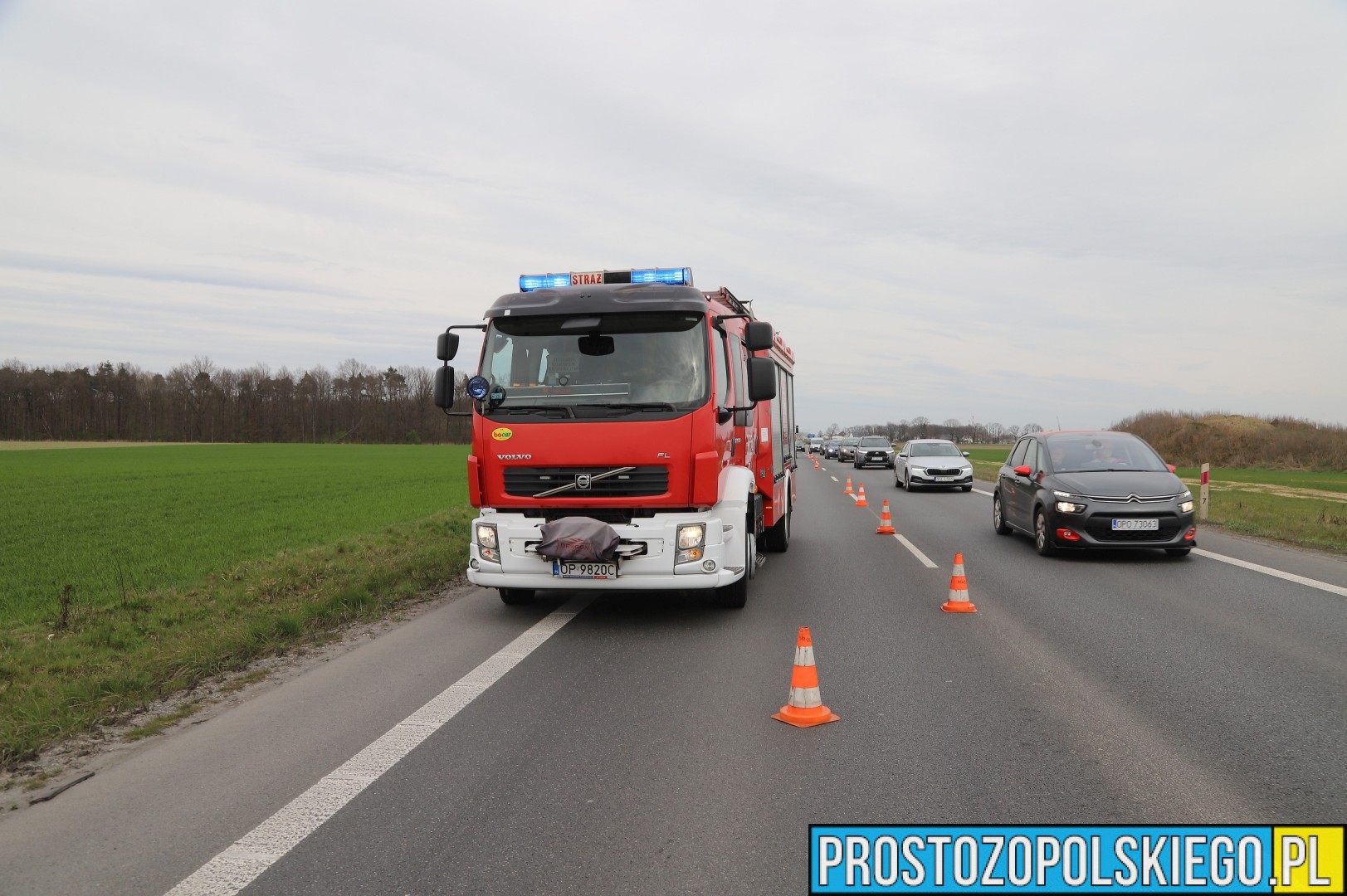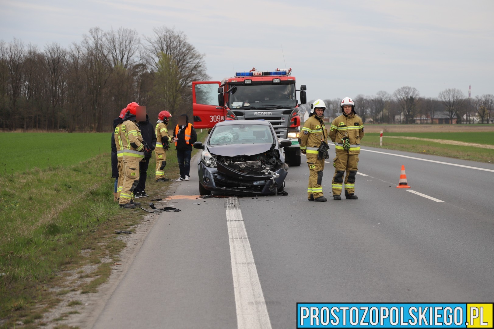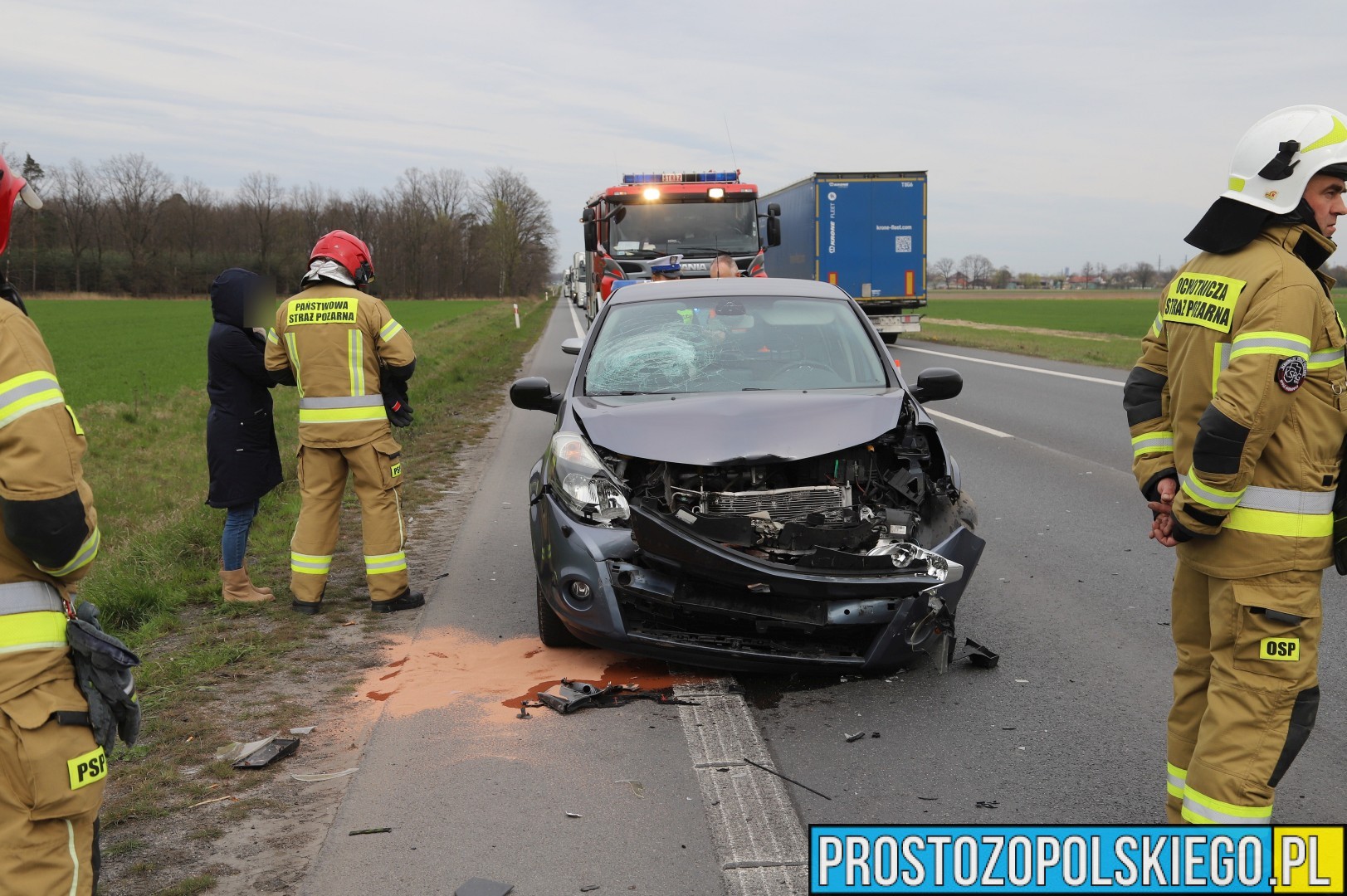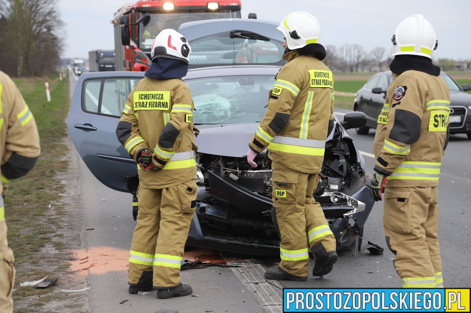 Na miejscu interweniowały dwa zastępy straży pożarnej z JRG 2 Opole, jednostka OSP Opole-Bierkowice oraz patrol policji. W trakcie działań służb ratunkowych strażacy kierowali ruchem, aby zapewnić bezpieczeństwo i płynność przejazdu.