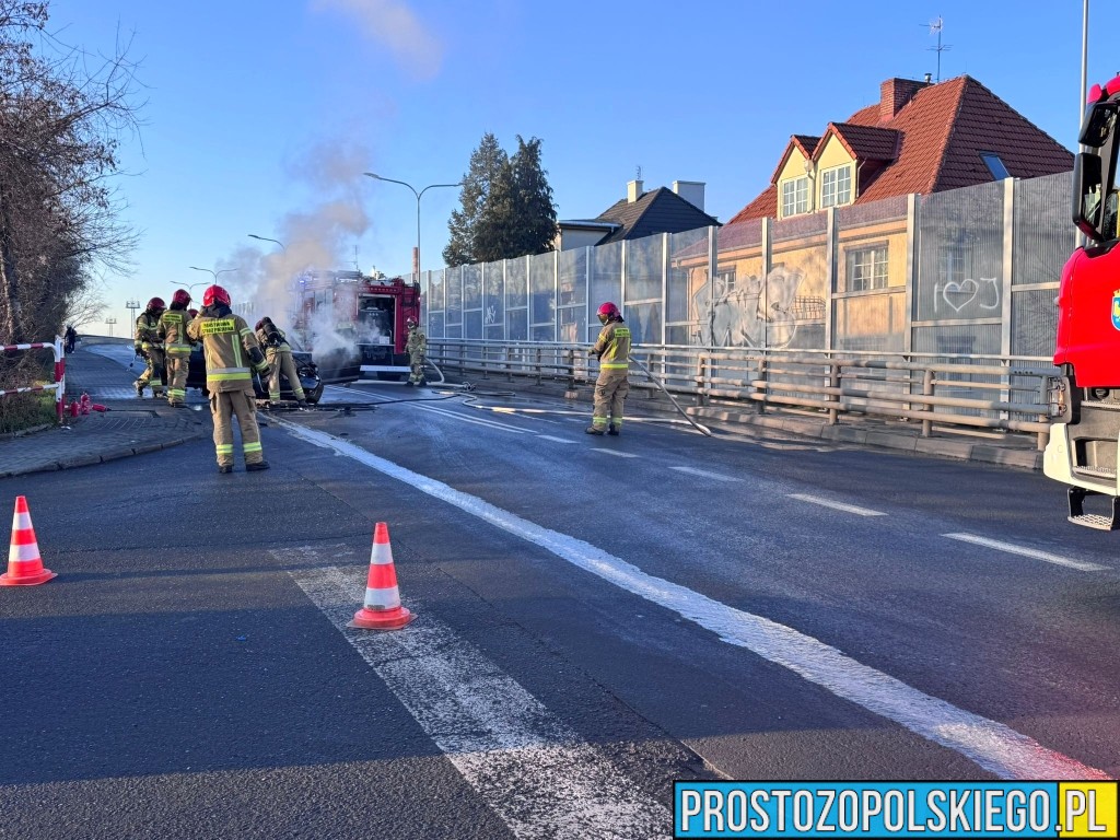 W czwartek, 18 grudnia, po godzinie 14:00 służby ratunkowe otrzymały zgłoszenie o pożarze samochodu osobowego na wiadukcie kolejowym przy ul. Braci Kowalczyków w Opolu. Do zdarzenia doszło w trakcie jazdy pojazdu.