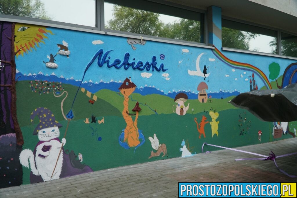 Mural powstał przy Kociej Kawiarni Niebieski Kot – miejscu, które od trzech lat łączy miłość do kawy i kotów. To nie tylko klimatyczna kawiarnia, w której można napić się aromatycznej kawy, herbaty i zjeść domowe ciasto w towarzystwie mruczących czworonogów. Niebieski Kot to przede wszystkim Dom Tymczasowy, który daje kotom bezpieczne schronienie, opiekę i szansę na znalezienie nowego, kochającego domu.