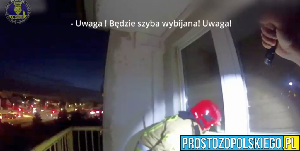 Mundurowi podjęli decyzję o dostaniu się do lokalu przez balkon. Na miejsce wezwano strażaków Państwowej Straży Pożarnej w Opolu, którzy wybili szybę w drzwiach balkonowych, umożliwiając wejście do mieszkania.