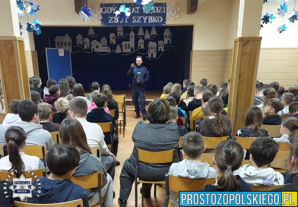 Policjanci z Brzegu, Lewina Brzeskiego oraz Grodkowa odwiedzili szkoły i przedszkola, by spotkać się z najmłodszymi i porozmawiać o bezpieczeństwie podczas ferii zimowych. Mundurowi przekazali dzieciom niezbędną wiedzę na temat zagrożeń, z jakimi mogą się spotkać w czasie zimowego wypoczynku.