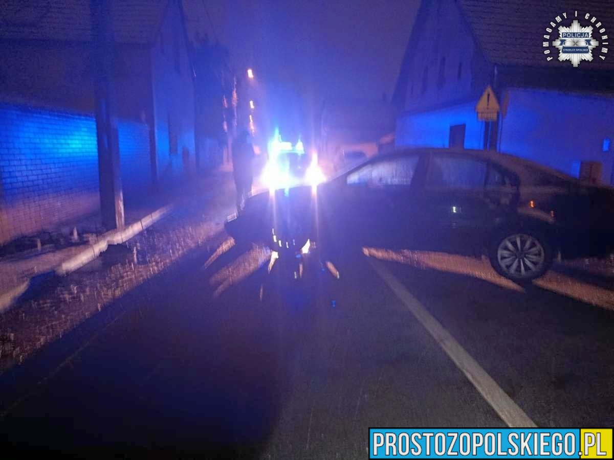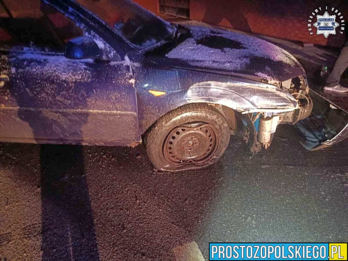 Do zdarzenia doszło w miniony weekend, w Walentynki, na ulicy 1 Maja w Strzelcach Opolskich. Dyżurny policji otrzymał zgłoszenie, że osobowy ford uderzył w słup energetyczny, a kierująca próbuje oddalić się z miejsca. Na miejsce natychmiast skierowano patrol drogówki. Świadkowie relacjonowali, że po usłyszeniu huku zobaczyli kobietę próbującą odjechać uszkodzonym pojazdem, jednak bezskutecznie.