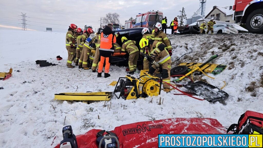 We wtorek rano na drodze krajowej nr 45 w rejonie miejscowości Polska Cerekiew doszło do groźnego wypadku drogowego z udziałem trzech samochodów osobowych. W wyniku zderzenia jeden z pojazdów wypadł z jezdni i przewrócił się na bok, a trasa została całkowicie zablokowana.