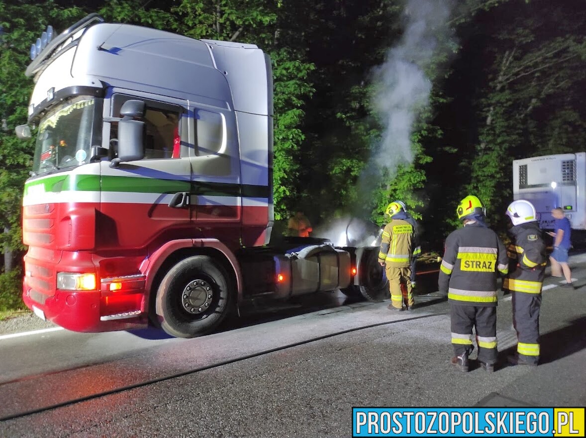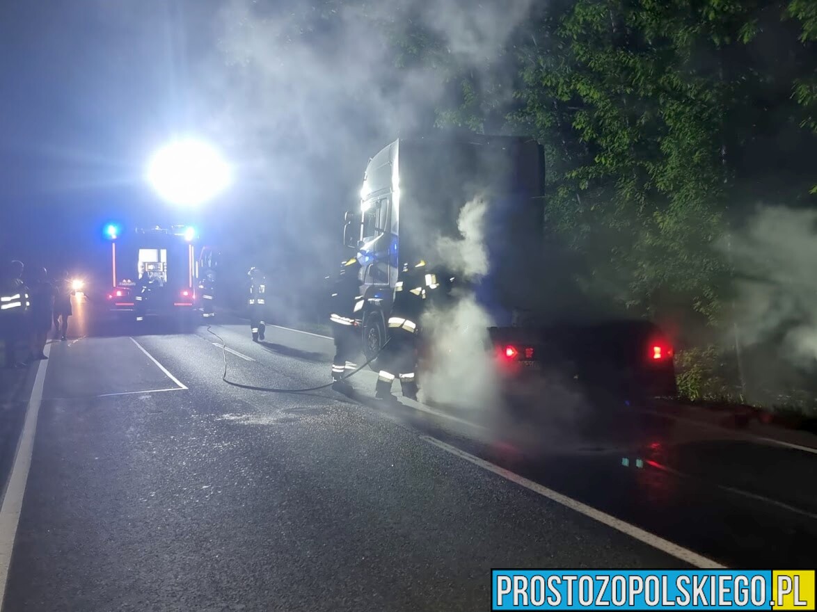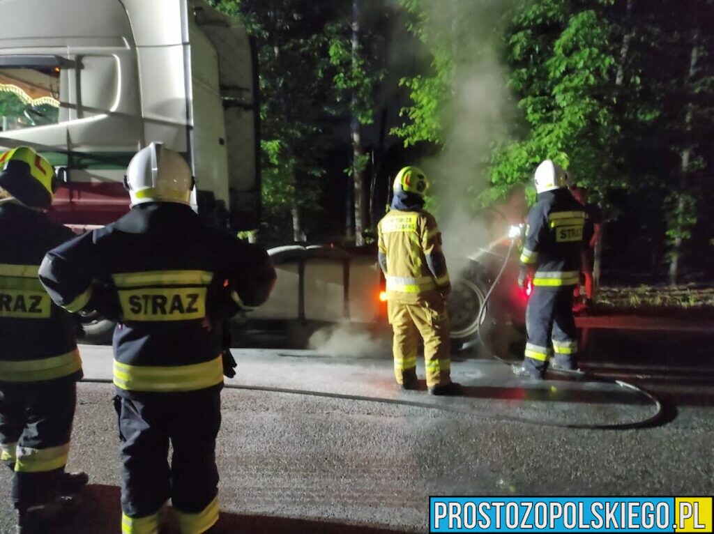 Kierujący ciężarową marki scania, jadąc od strony Kluczborka do Opola zobaczył, że z tylnej części pojazdu, na wysokości kół wydobywał się dym.