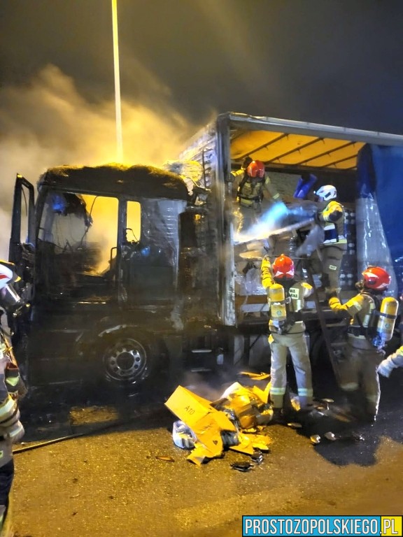 Po przybyciu pierwszych jednostek okazało się, że ogniem objęta była zarówno kabina ciężarówki, jak i cała naczepa. Na miejsce zadysponowano cztery zastępy straży pożarnej z JRG Strzelce Opolskie oraz OSP Wysoka, a także policję i pomoc drogową.