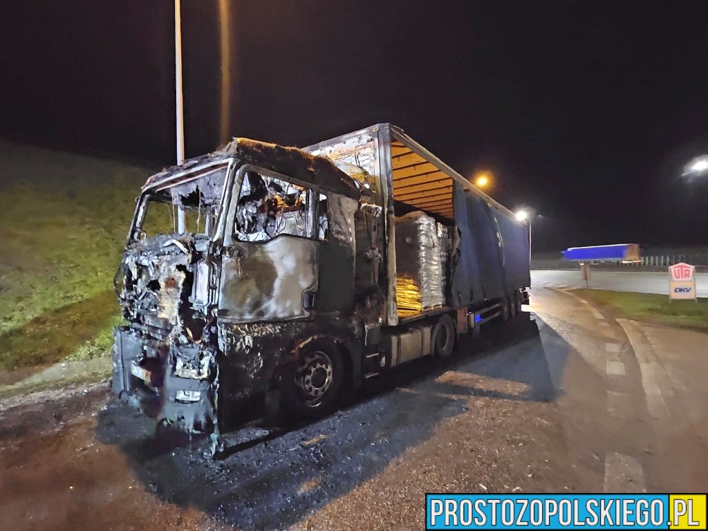 W czwartek, 4 grudnia o godzinie 20:37, służby ratunkowe otrzymały zgłoszenie o pożarze samochodu ciężarowego z naczepą na wjeździe na MOP Wysoka.