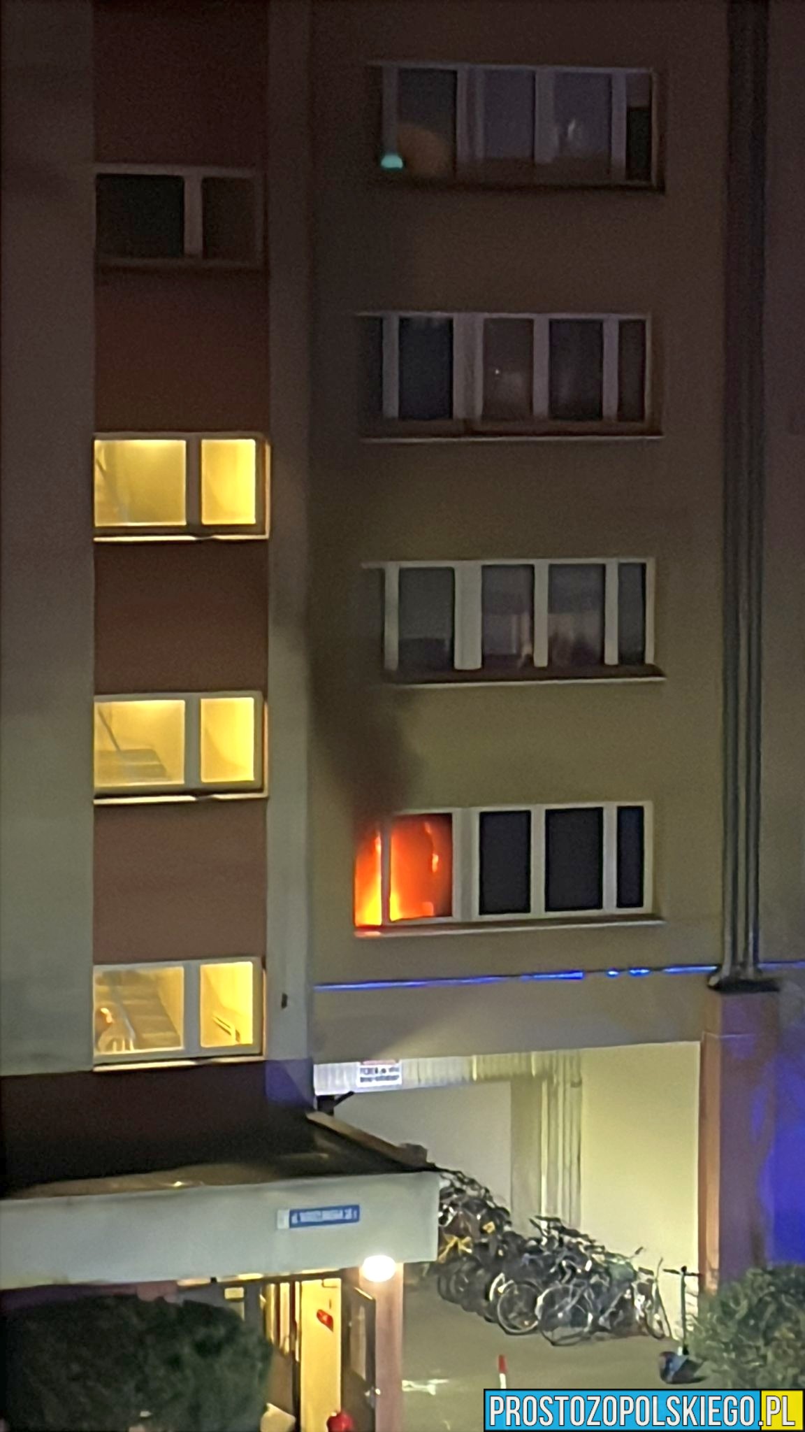 We wtorek, 2 grudnia, o godzinie 17:55 służby ratunkowe otrzymały zgłoszenie o pożarze mieszkania w wieżowcu przy ul. Wrocławskiej w Opolu. Ogień pojawił się na pierwszym piętrze w jednej z klatek budynku. Płomienie były widoczne na zewnątrz – ogień wydobywał się przez okno mieszkania.