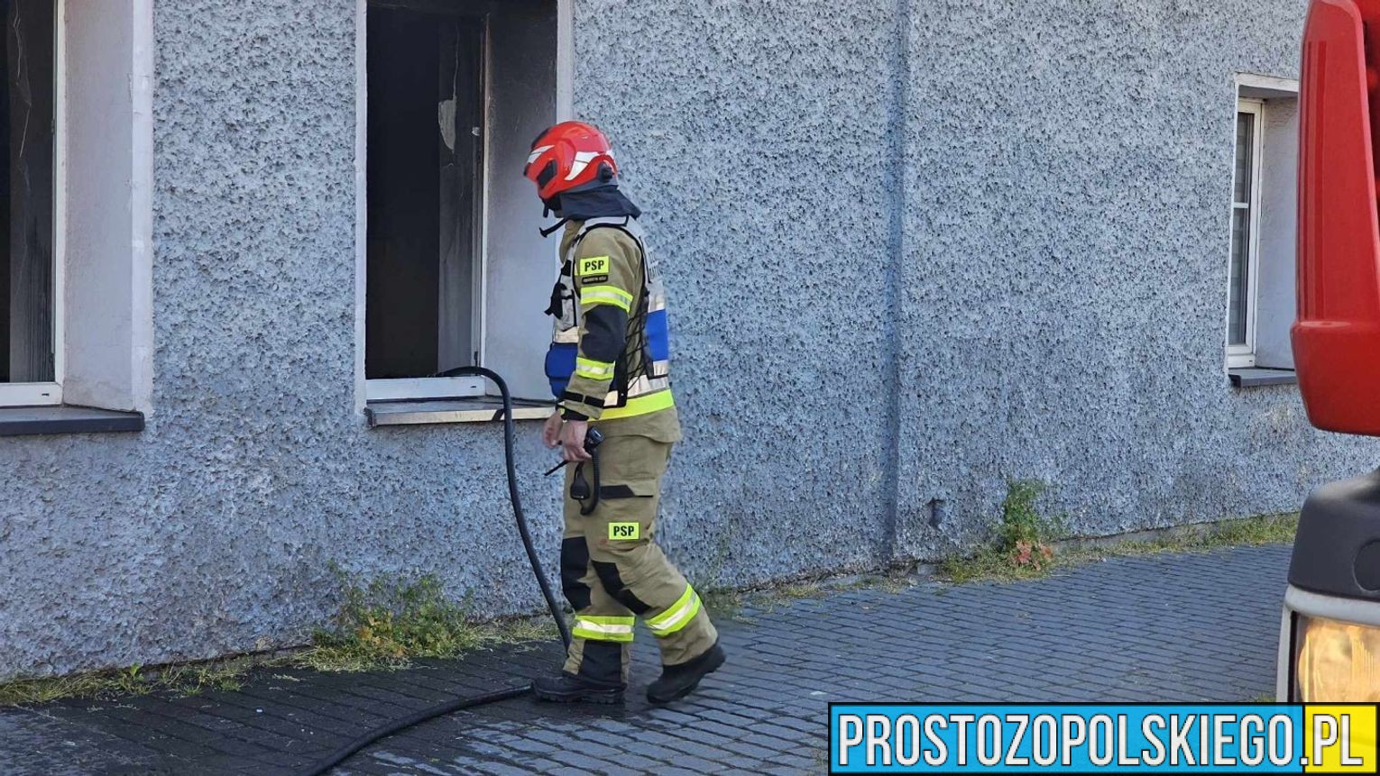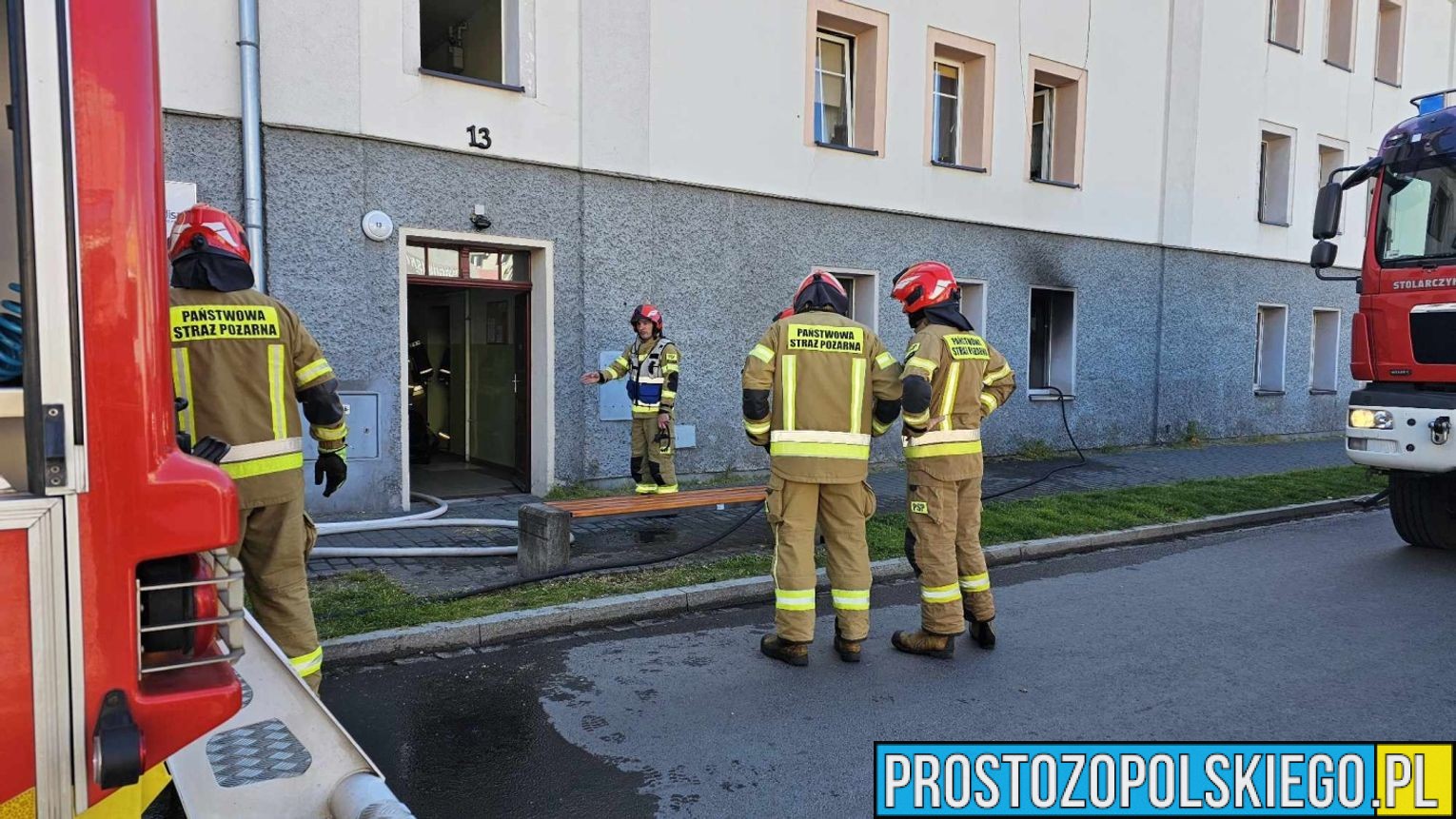 Zgłoszenie do operatora numeru alarmowego wpłynęło w niedzielę 12 maja przed godziną 16. Wynikało z niego, że w jednym z bloków pali się mieszkanie na parterze. Z okien wydobywały się kłęby gęstego, czarnego dymu.