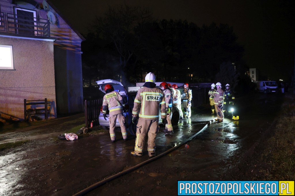 Trwają ustalenia, w jaki sposób doszło do pożaru samochodu z instalacją gazową, który znajdował się na terenie prywatnej posesji.