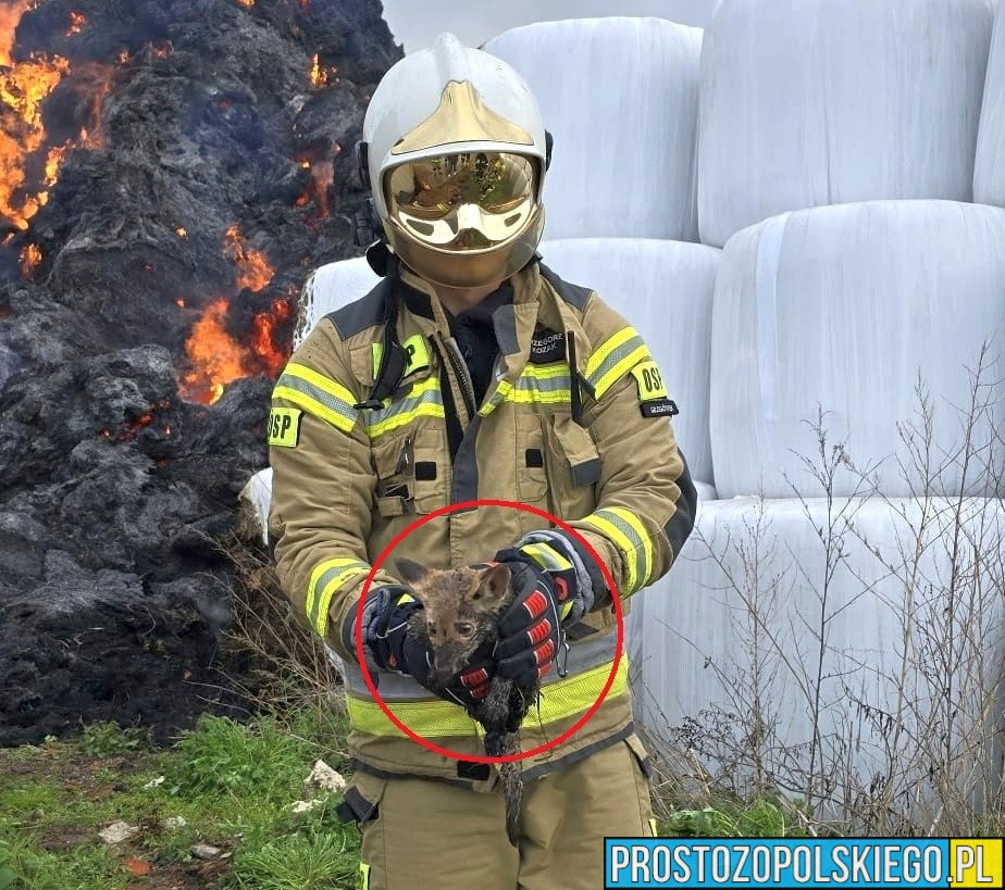Ratownicy z Ochotniczej Straży Pożarnej w Głogówku wydobyli z płonącej sterty malutkiego lisa – zaledwie 4-tygodniowego. Zwierzę miało spalone futro i było wycieńczone, ale dzięki błyskawicznej reakcji przeżyło.