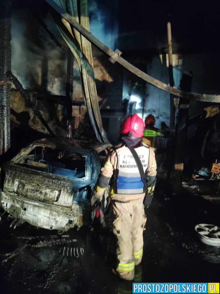 Po przybyciu służb ratunkowych potwierdzono, że pożar był w pełni rozwinięty. Ogień objął warsztat samochodowy, wewnątrz którego znajdowały się dwa pojazdy zaparkowane w garażu. Sytuacja była bardzo dynamiczna i stwarzała poważne zagrożenie zarówno dla ratowników, jak i okolicznych zabudowań.