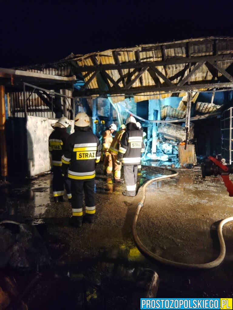 Podczas prowadzonych działań doszło do zawalenia się części dachu do wnętrza budynku, co było efektem intensywnego rozwoju pożaru. Na miejscu cały czas prowadzono działania mające na celu opanowanie ognia oraz zabezpieczenie terenu.