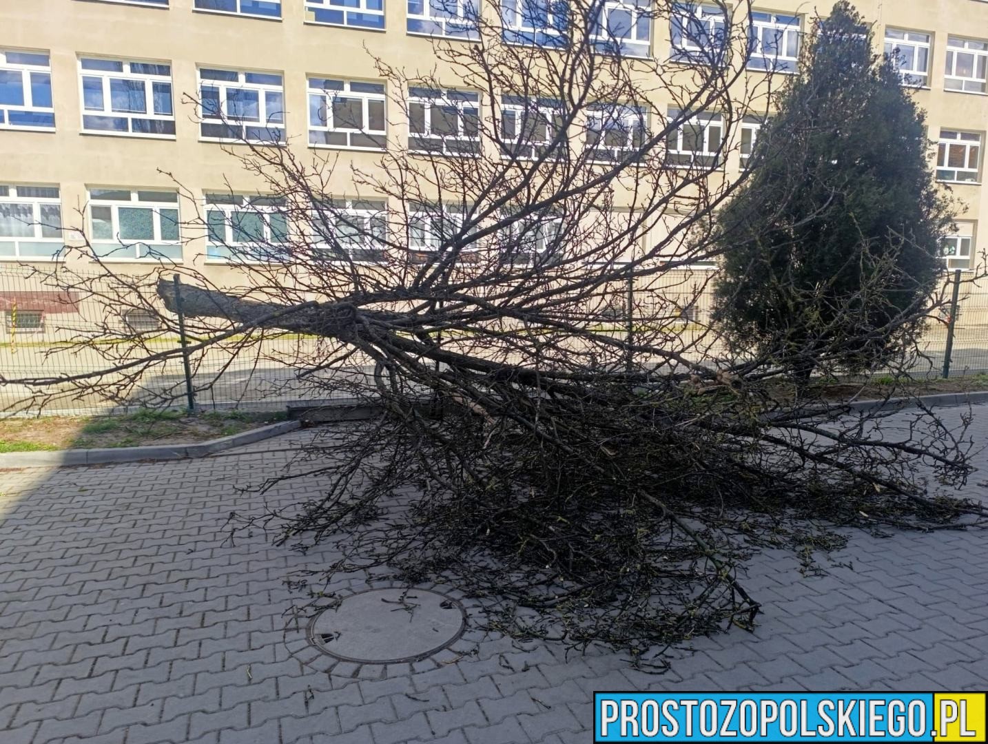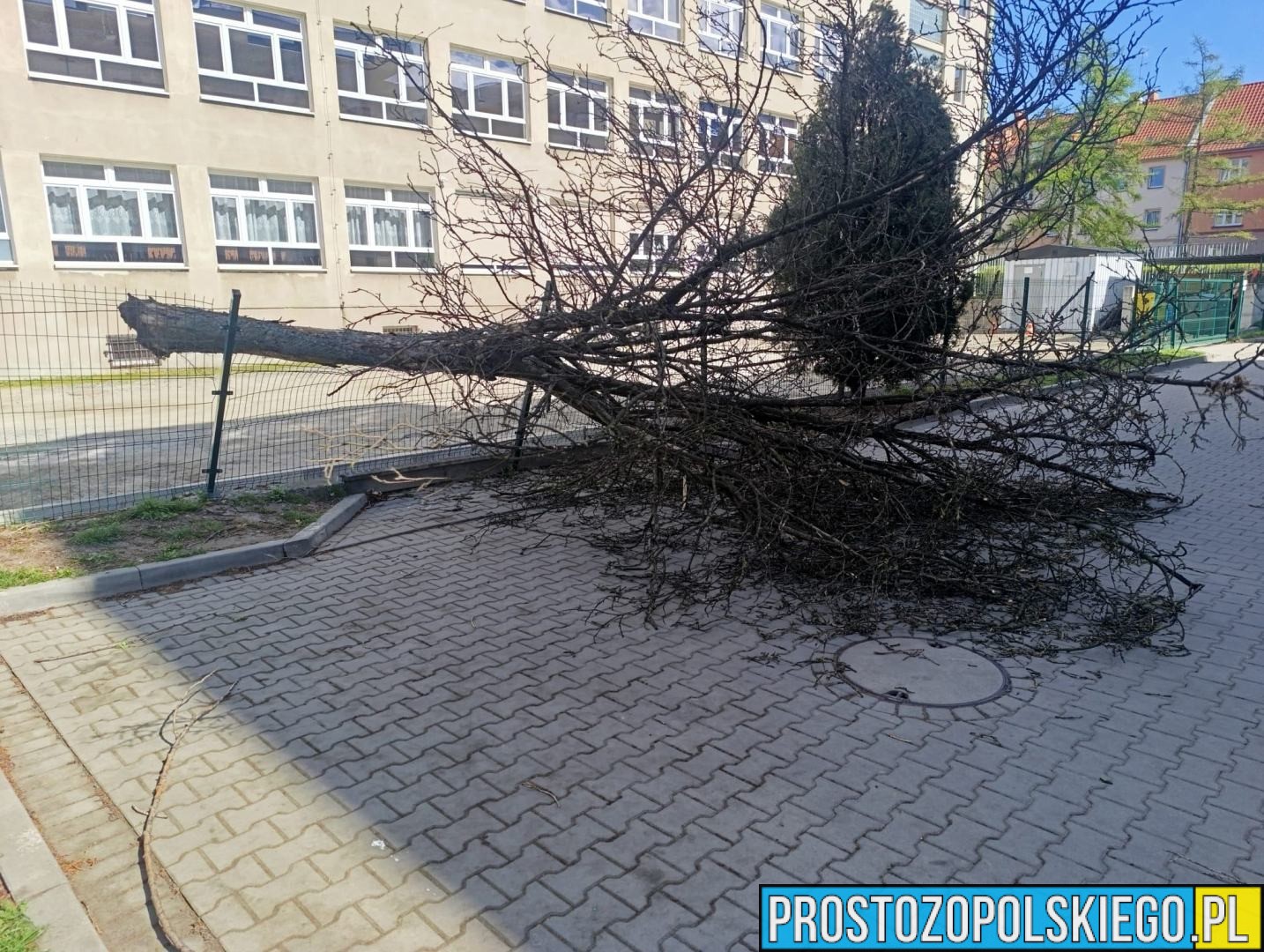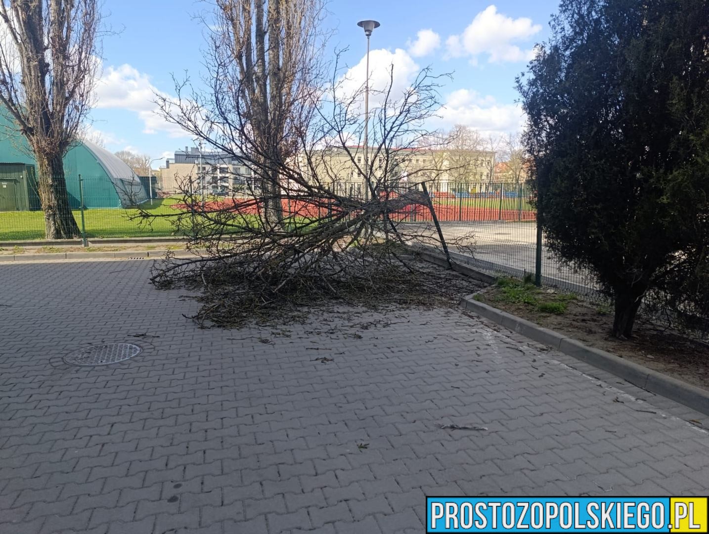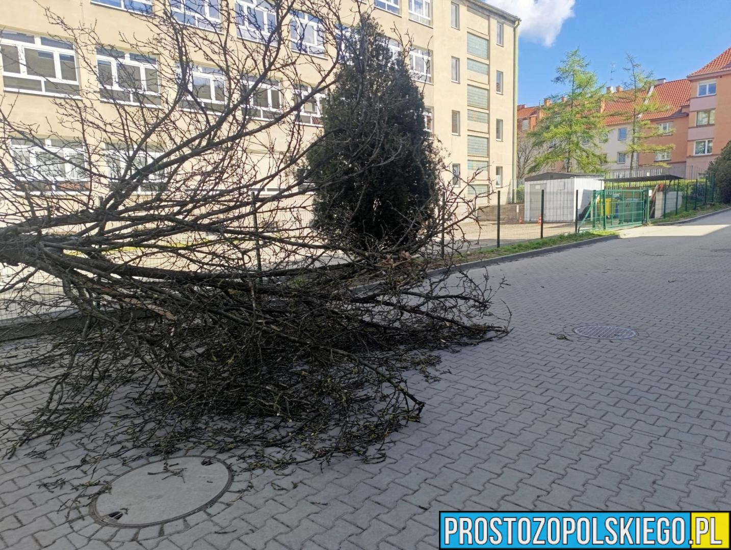 W poniedziałek, 6 kwietnia, dokładnie w samo południe, służby ratunkowe otrzymały zgłoszenie o powalonym drzewie na terenie jednej ze szkół przy ul. Katowickiej w Opolu. Na miejsce natychmiast zadysponowano strażaków.