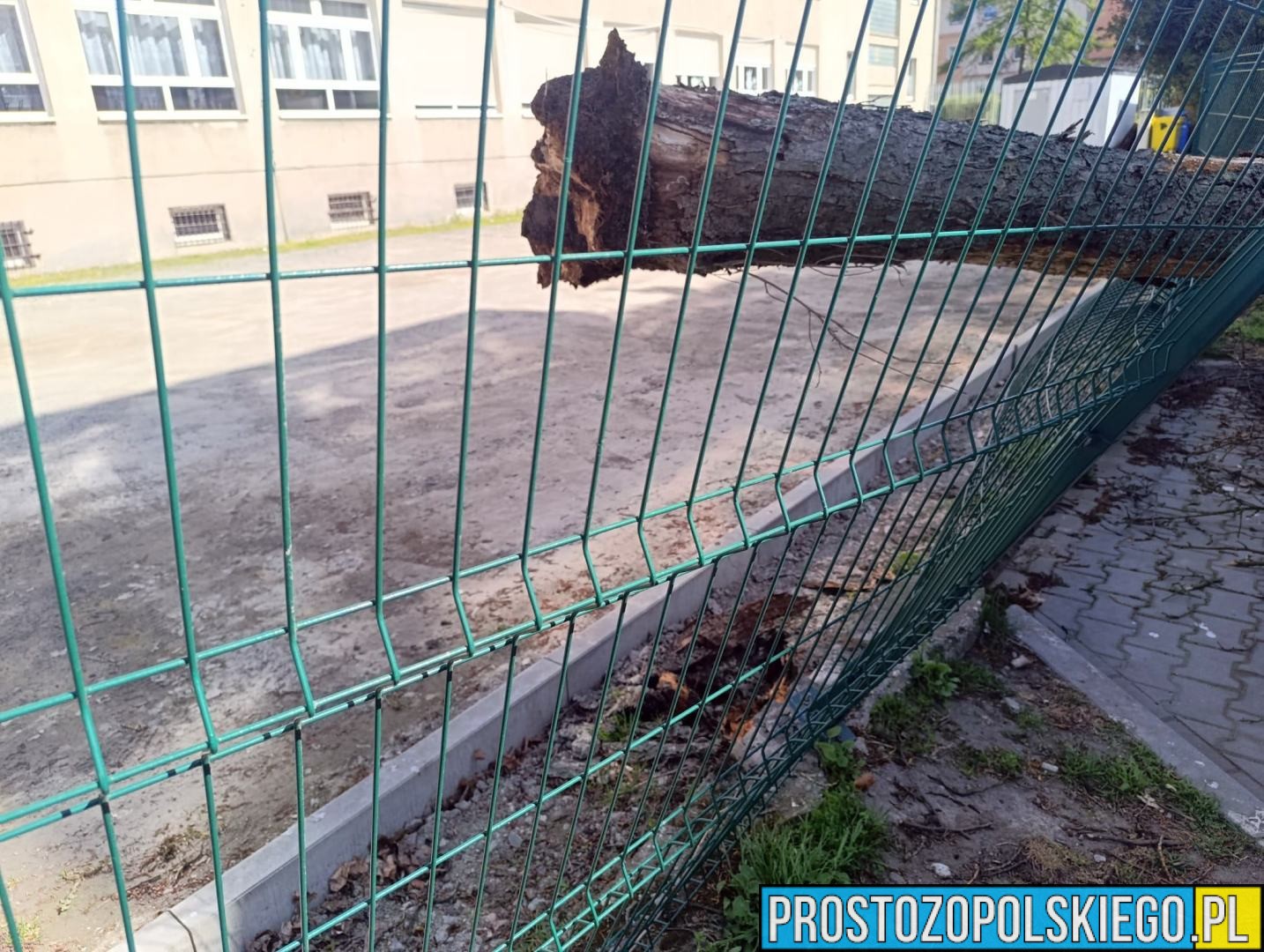 Jak wynika ze wstępnych informacji, silny wiatr przewrócił drzewo, które spadło na ogrodzenie szkoły, powodując jego uszkodzenie. Na szczęście w chwili zdarzenia nikogo nie było w pobliżu – nie odnotowano osób poszkodowanych.