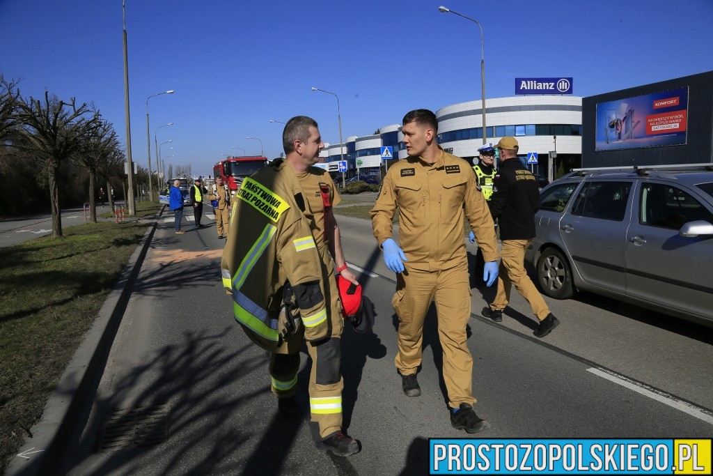 Zgłoszenie o zdarzeniu wpłynęło do służb o godzinie 12:42. Na wypadek natrafili strażacy z JRG 1 Opole, którzy wracali ze szkolenia. To właśnie oni jako pierwsi przystąpili do udzielania pierwszej pomocy poszkodowanej kobiecie i prowadzili działania ratownicze do czasu przyjazdu zespołu ratownictwa medycznego.