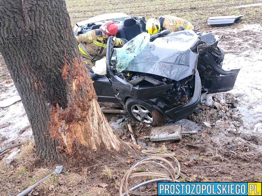 – Ze wstępnych ustaleń wynika, że samochód osobowy z nieznanych na tę chwilę przyczyn zjechał z jezdni i uderzył w drzewo. W pojeździe znajdowała się jedna osoba, która była uwięziona wewnątrz wraku – przekazał st. kpt. Daniel Kaczmarek, oficer prasowy Państwowej Straży Pożarnej w Oleśnie.