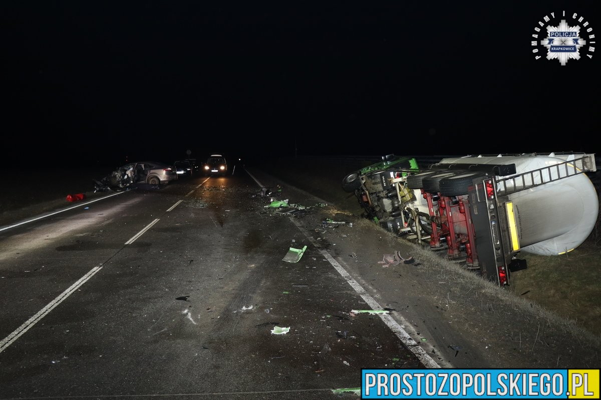 Krapkowiccy policjanci pod nadzorem prokuratora wyjaśniają okoliczności tragicznego wypadku drogowego, do którego doszło w rejonie Gogolina. W wyniku czołowego zderzenia samochodu osobowego z pojazdem ciężarowym śmierć na miejscu poniósł 41-letni kierowca osobówki.