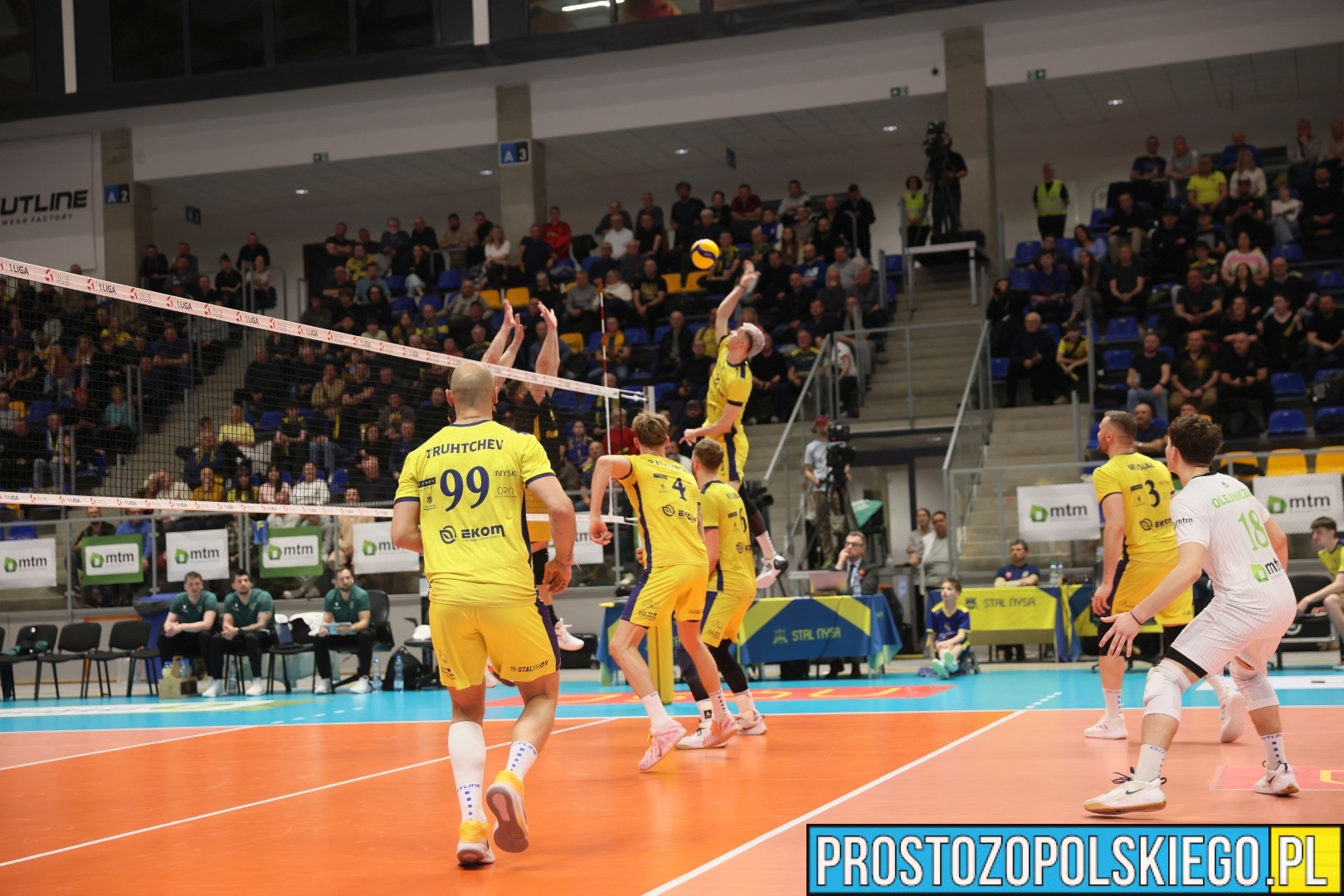 Po zmianie stron gospodarze pokazali swoją siłę. Stal Nysa znacząco poprawiła grę w każdym elemencie – od przyjęcia po atak. Ograniczenie błędów własnych i skuteczna gra pozwoliły nysanom pewnie wygrać trzecią odsłonę 25:18. Decydujący punkt zdobył z lewego skrzydła Kamil Kosiba.