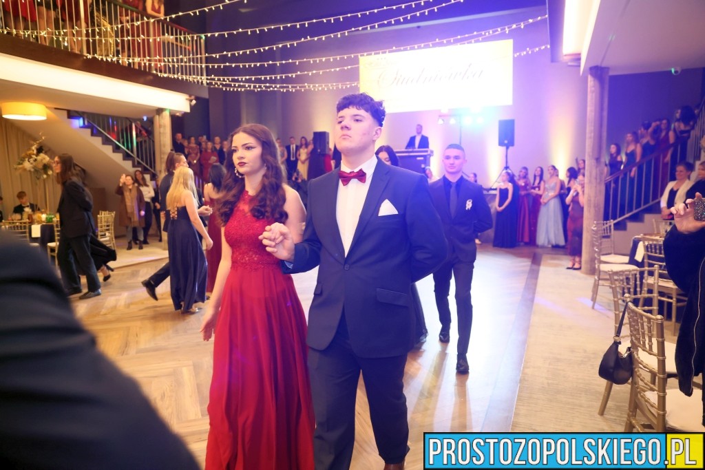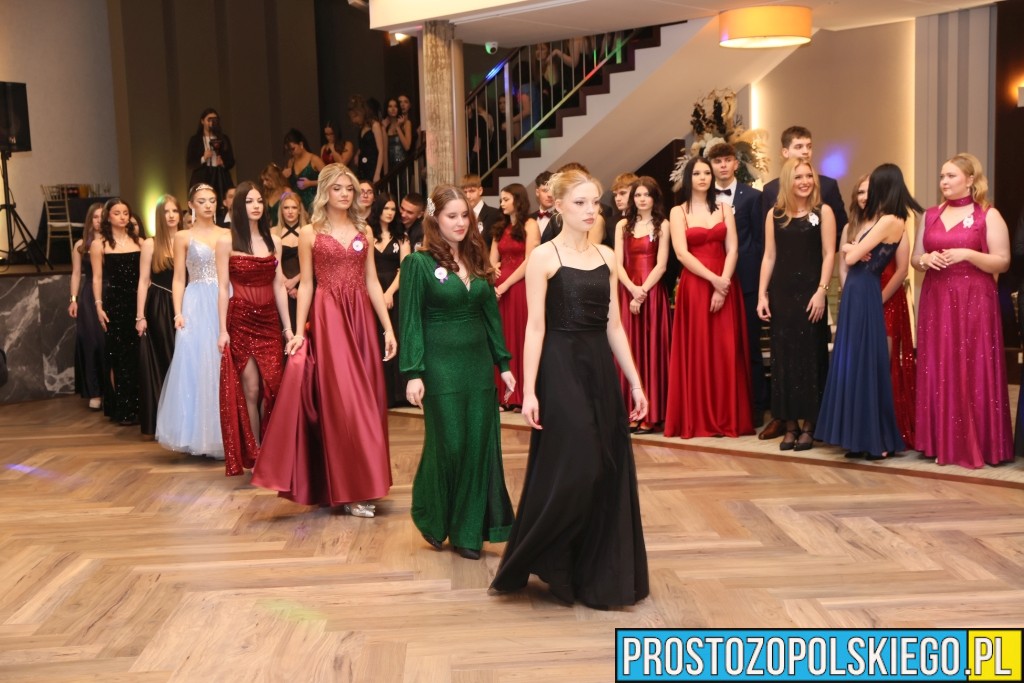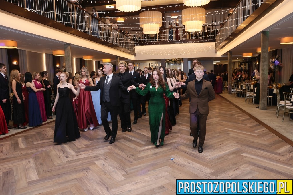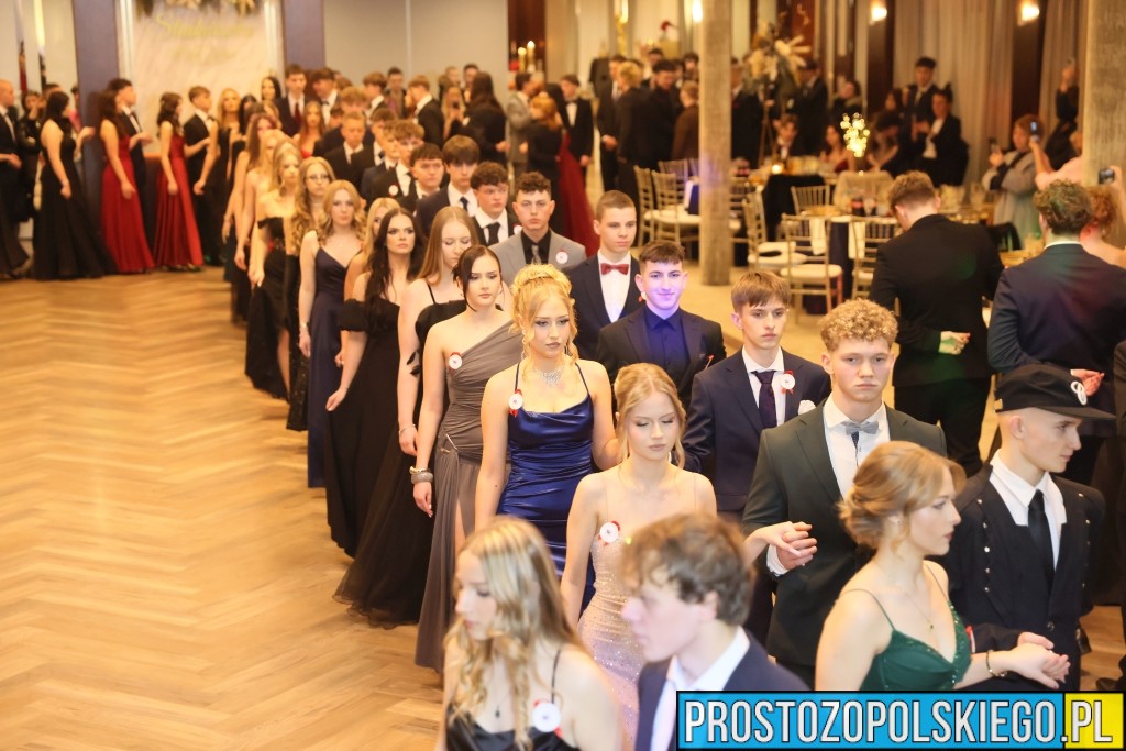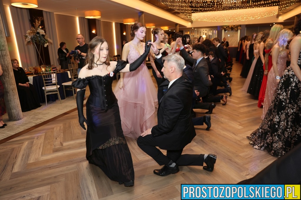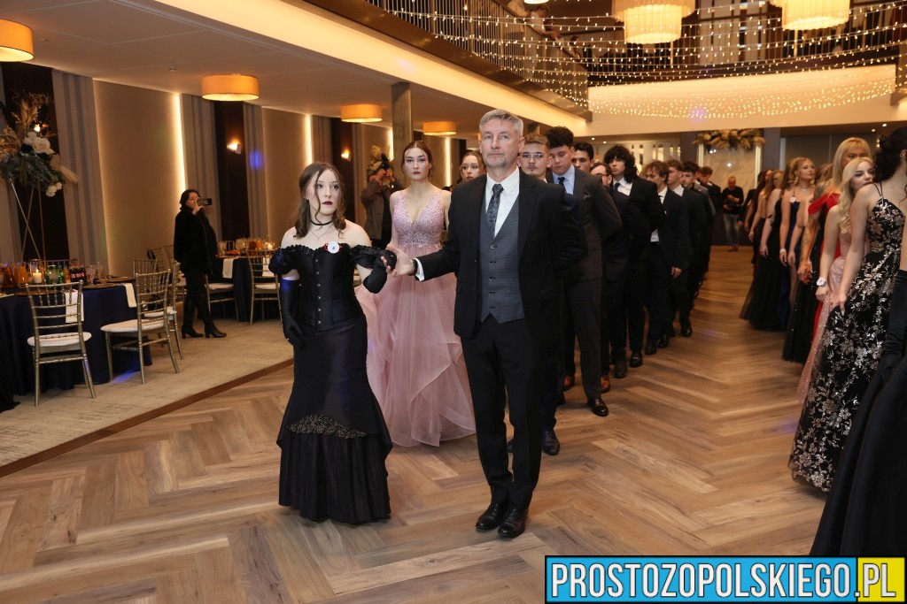 Uroczystość rozpoczęła się zgodnie z wieloletnią tradycją — dostojnym polonezem, który wzbudził ogromne emocje zarówno wśród uczniów, jak i zaproszonych gości. Następnie wzniesiono kieliszek szampana, oficjalnie otwierając studniówkowy bal.