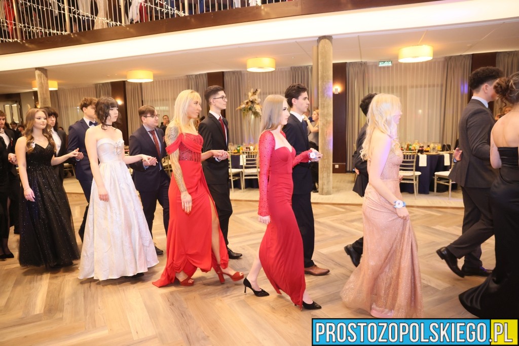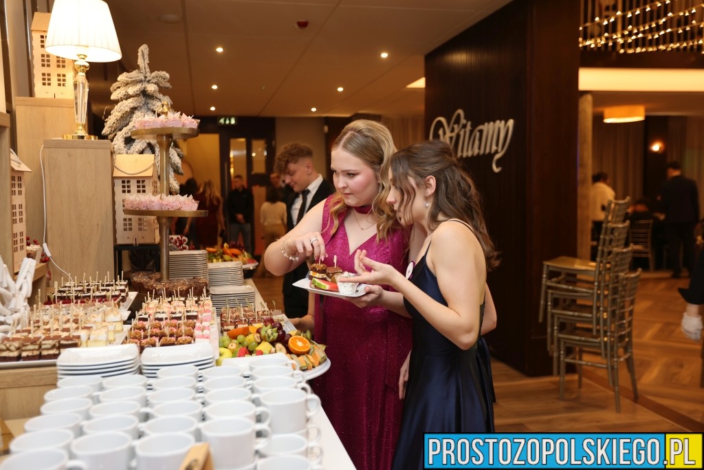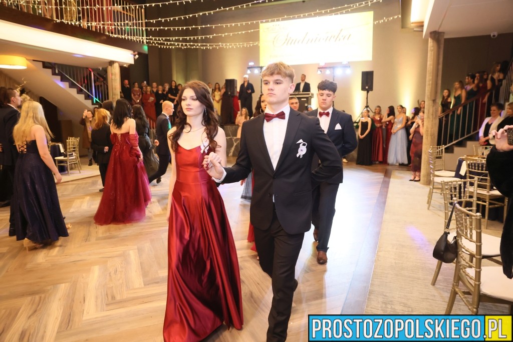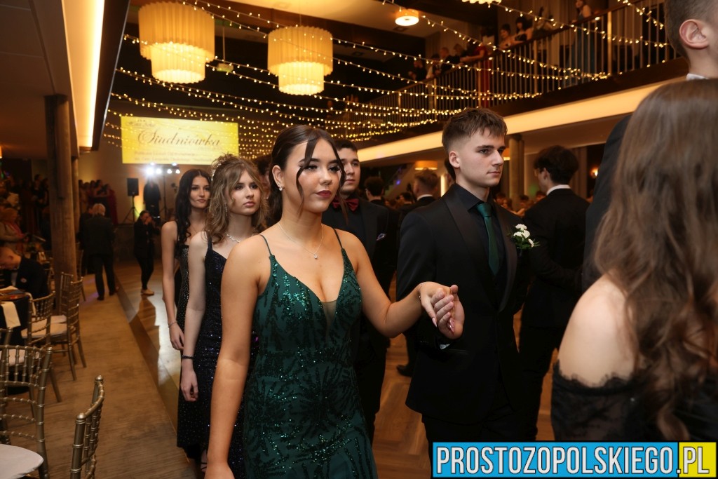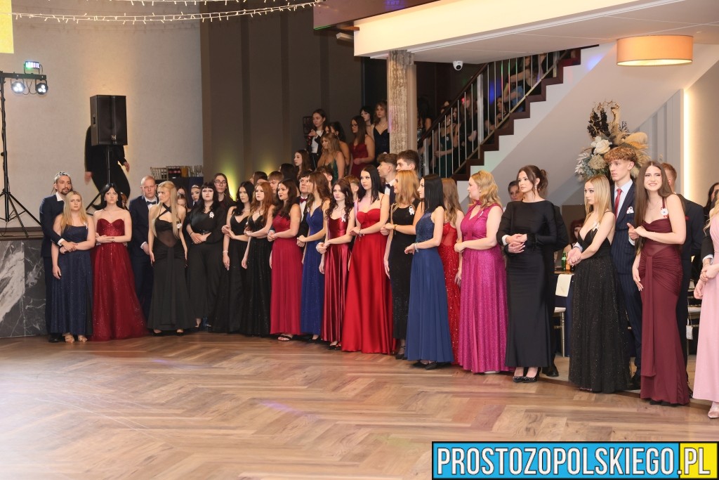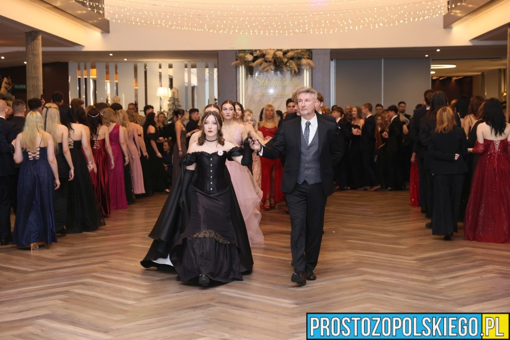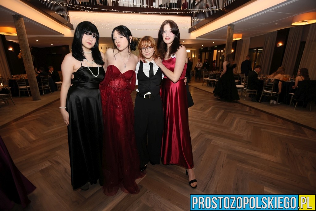 Uroczystość rozpoczęła się zgodnie z wieloletnią tradycją — dostojnym polonezem, który wzbudził ogromne emocje zarówno wśród uczniów, jak i zaproszonych gości. Następnie wzniesiono kieliszek szampana, oficjalnie otwierając studniówkowy bal.
