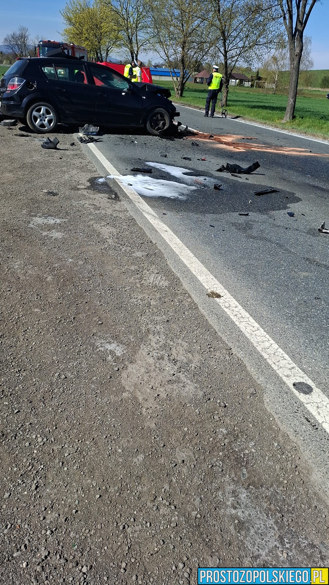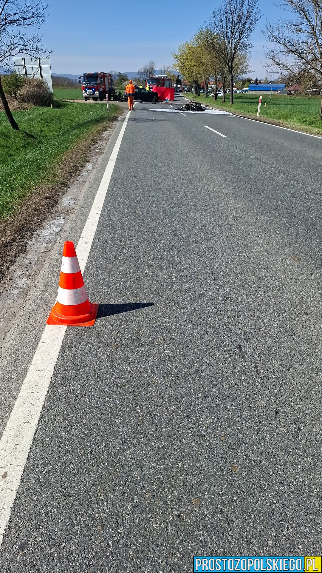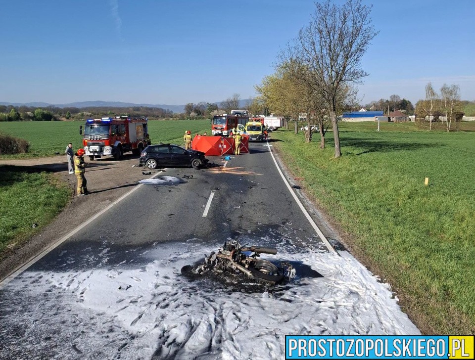 W sobotę, 18 kwietnia, po godzinie 8:00 służby ratunkowe otrzymały zgłoszenie o poważnym wypadku drogowym na drodze krajowej nr 46, na odcinku Ścibórz – Frydrychów (okolice 37. kilometra trasy). Doszło tam do zderzenia samochodu osobowego z motocyklem.