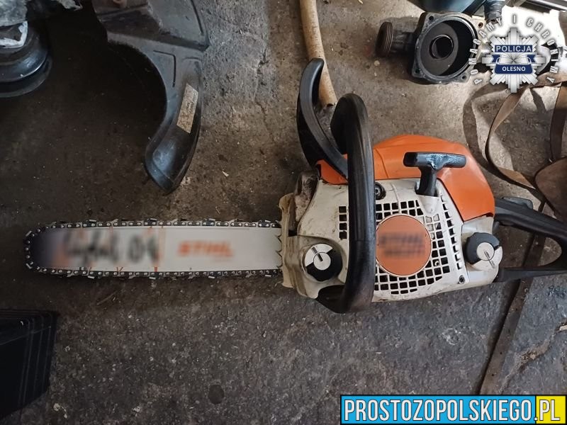 Pod koniec listopada br. olescy kryminalni otrzymali zgłoszenie dotyczące kradzieży piły spalinowej z posesji w jednej z miejscowości pod Olesnem. Funkcjonariusze od razu przystąpili do czynności, mających na celu ustalenie osoby, odpowiedzialnej za przestępstwo. Kryminalni zabezpieczyli ślady oraz dostępny monitoring. Jak ustalili śledczy, mężczyzna odpowiedzialny za kradzież przyjechał na posesję samochodem i po chwili zapakował do niego piłę spalinową. Po pewnym czasie wrócił na miejsce przestępstwa, ponieważ skradziona piła była pozbawiona łańcucha i żeby skompletować sprzęt, jeszcze tego samego dnia dokonał kolejnej kradzieży.