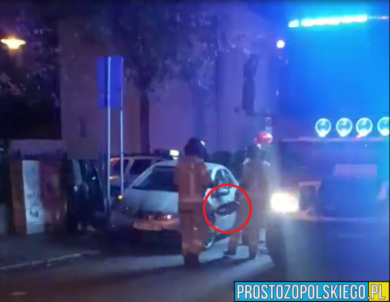 Na miejsce konieczne było wezwanie straży pożarnej z JRG 1 Opole. Działania strażaków polegały na odcięciu uszkodzonej blokady przy użyciu specjalistycznego sprzętu hydraulicznego. Samochód znajdował się na poboczu, co umożliwiło bezpieczne przeprowadzenie akcji.
