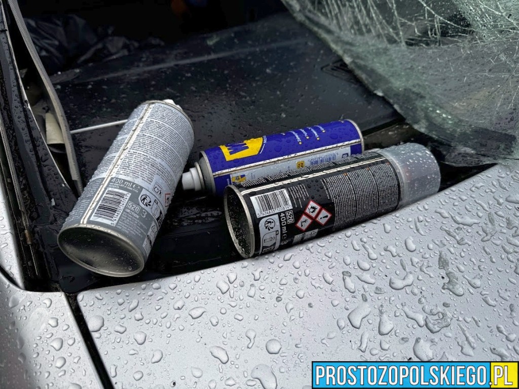 Chwilę później mężczyzna zapalił papierosa. Wtedy doszło do zapłonu i wybuchu, w wyniku którego uszkodzeniu uległa przednia i boczne szyby pojazdu. Na szczęście kierowca nie odniósł poważnych obrażeń — doznał jedynie lekkich poparzeń i zaczerwienienia skóry twarzy oraz dłoni.