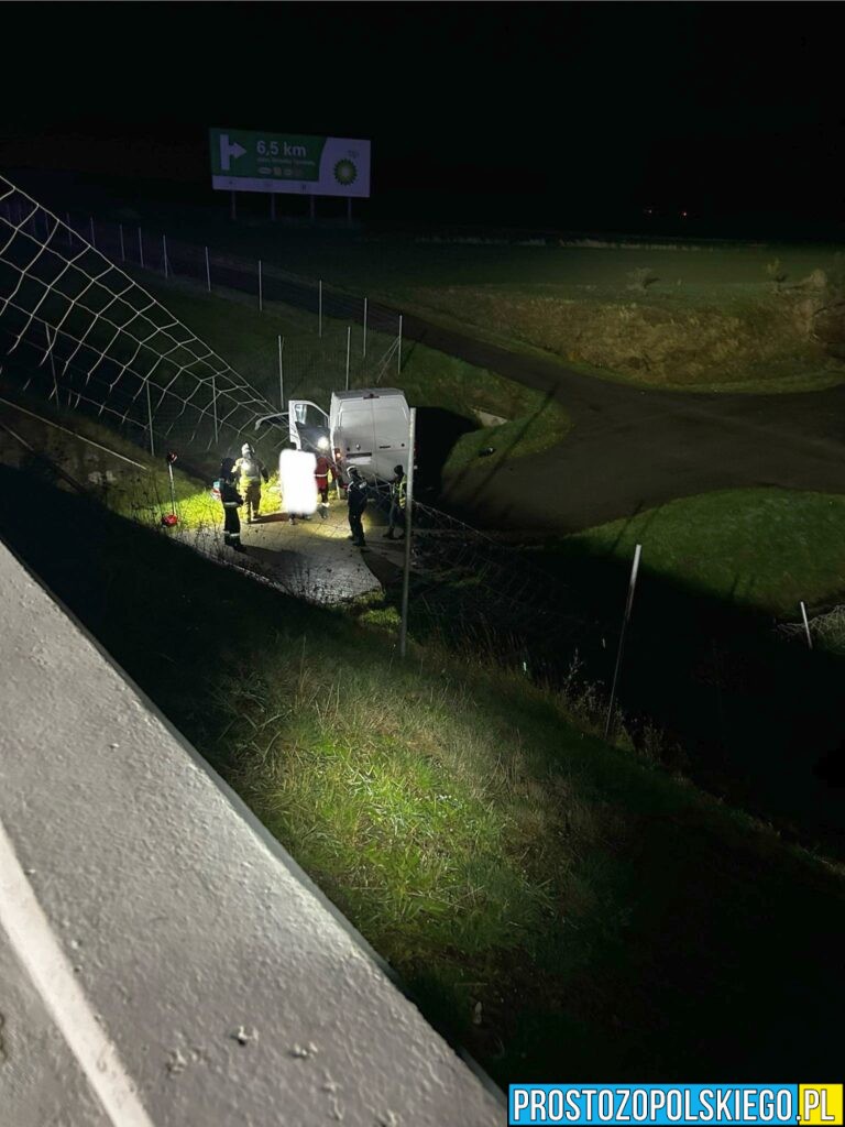 Ze wstępnych ustaleń wynika, że kierujący busem stracił panowanie nad pojazdem, zjechał z drogi na pas zieleni i uderzył w przepust drogowy. W wyniku zdarzenia kierowca został ranny i zabrany karetką do szpitala.
