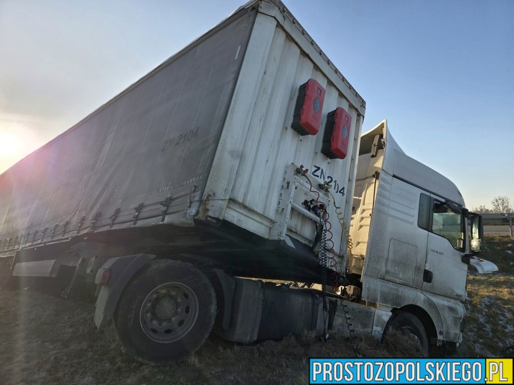 Na szczęście kierowca podróżował sam i nie odniósł żadnych obrażeń. Jak ustalono, w chwili zdarzenia ciężarówka nie przewoziła ładunku – pojazd jechał „na pusto”.