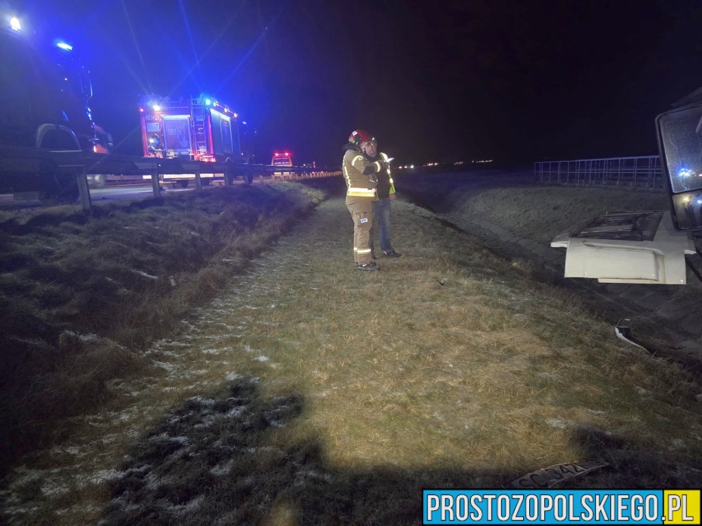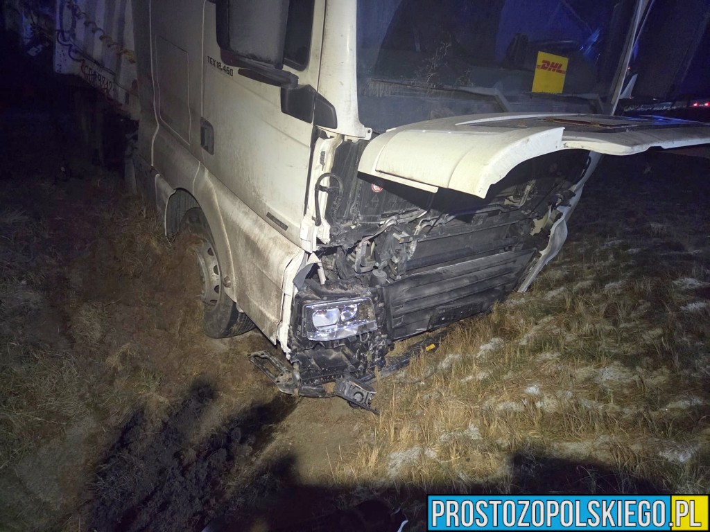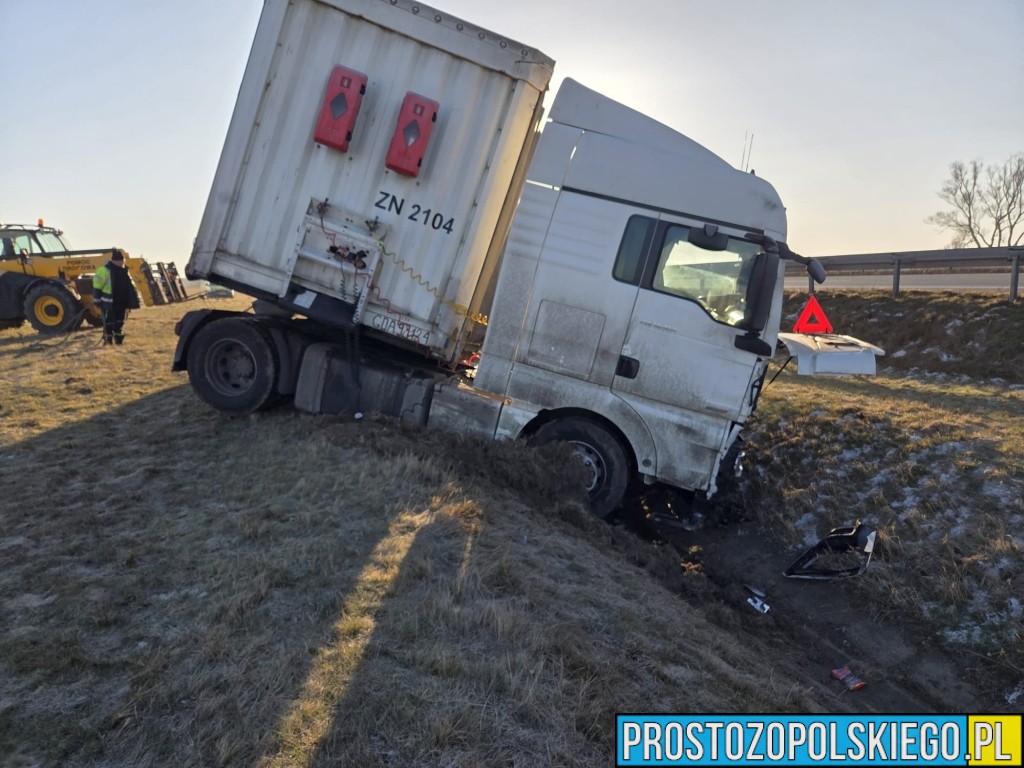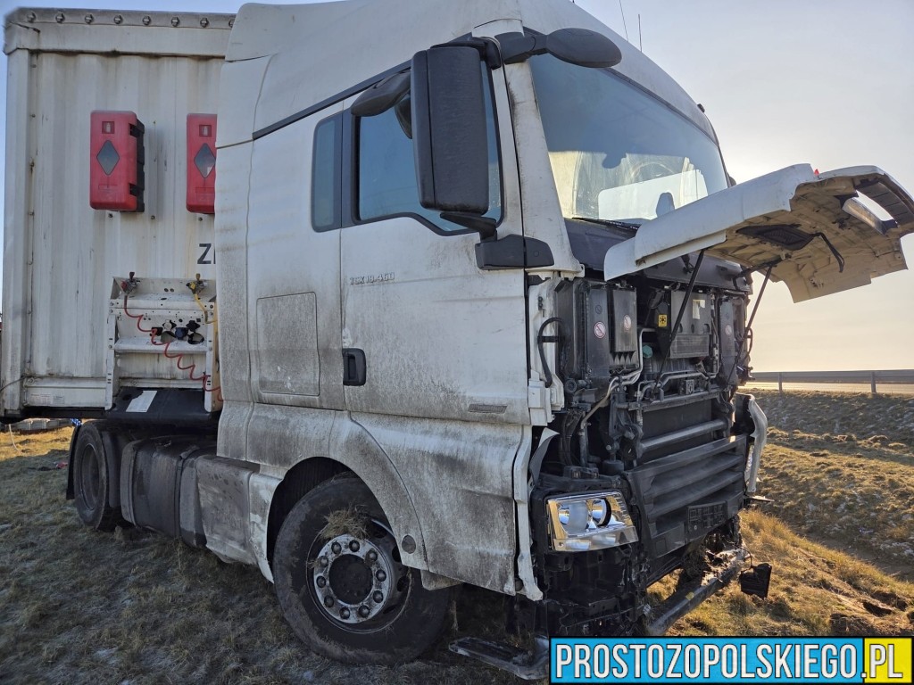 Ze wstępnych ustaleń wynika, że kierujący samochodem ciężarowym marki MAN stracił panowanie nad pojazdem, zjechał na pobocze, przebił bariery energochłonne, a następnie wpadł do przydrożnego rowu.