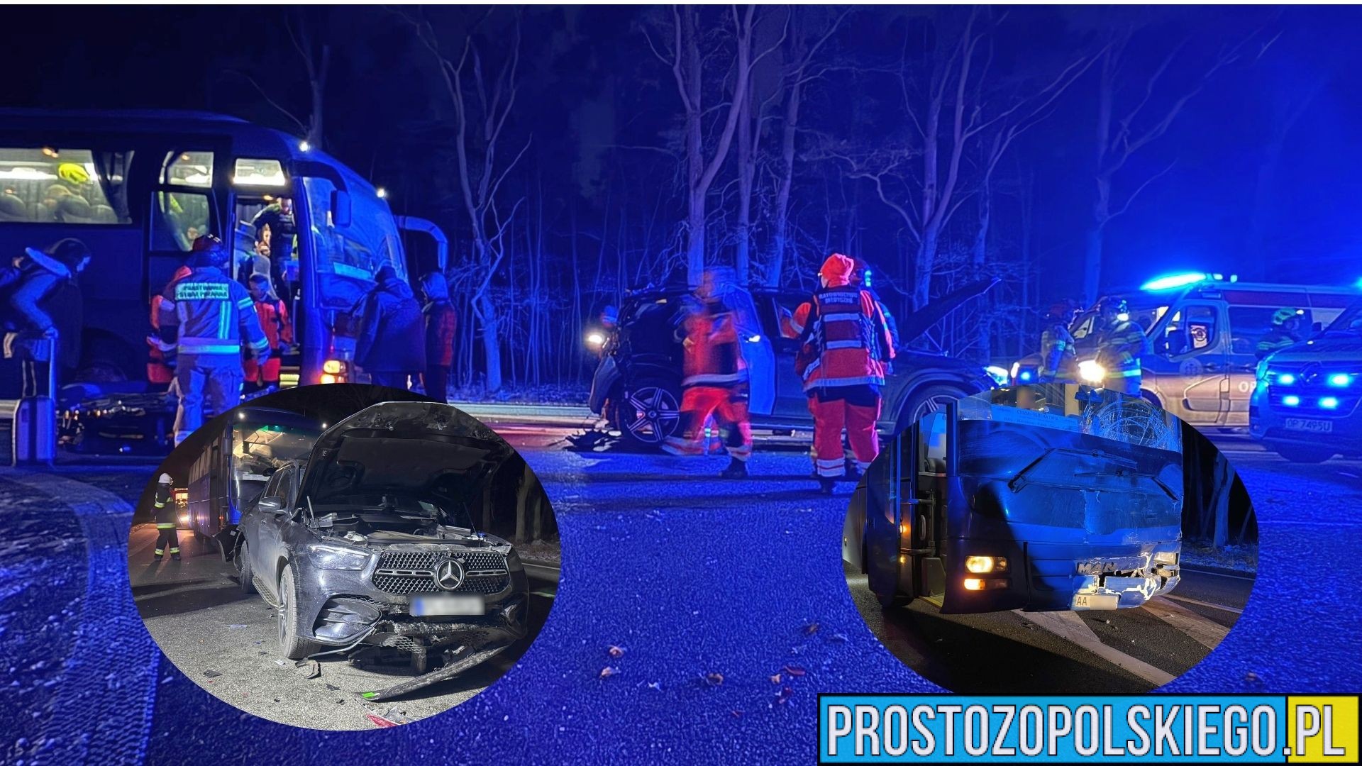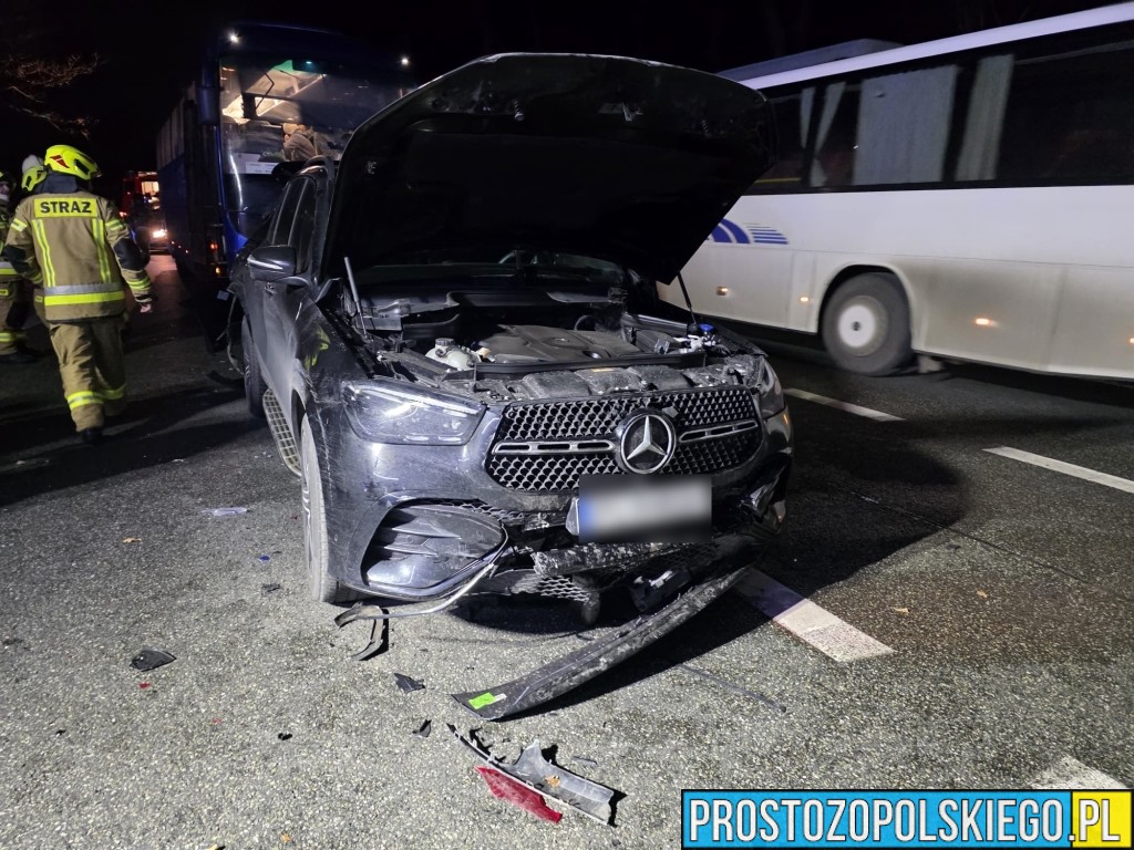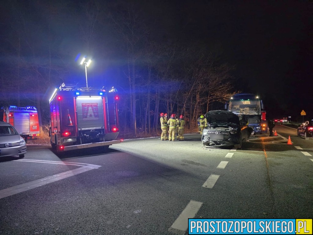 Jak wynika ze wstępnych informacji, doszło do zderzenia autobusu z dwoma samochodami osobowymi. Autobusem podróżowało 15 osób, natomiast w pojazdach osobowych znajdowały się łącznie 3 osoby.