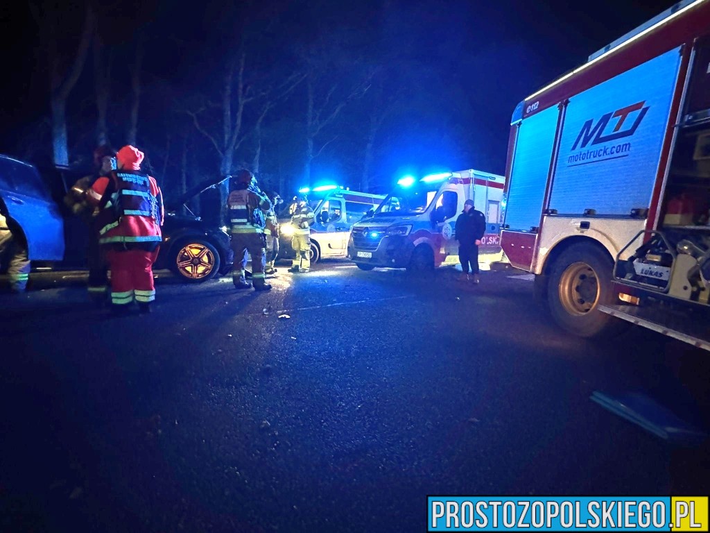 Droga w miejscu zdarzenia jest całkowicie zablokowana. Na miejscu trwają działania służb ratunkowych. W akcji uczestniczą cztery zastępy straży pożarnej: